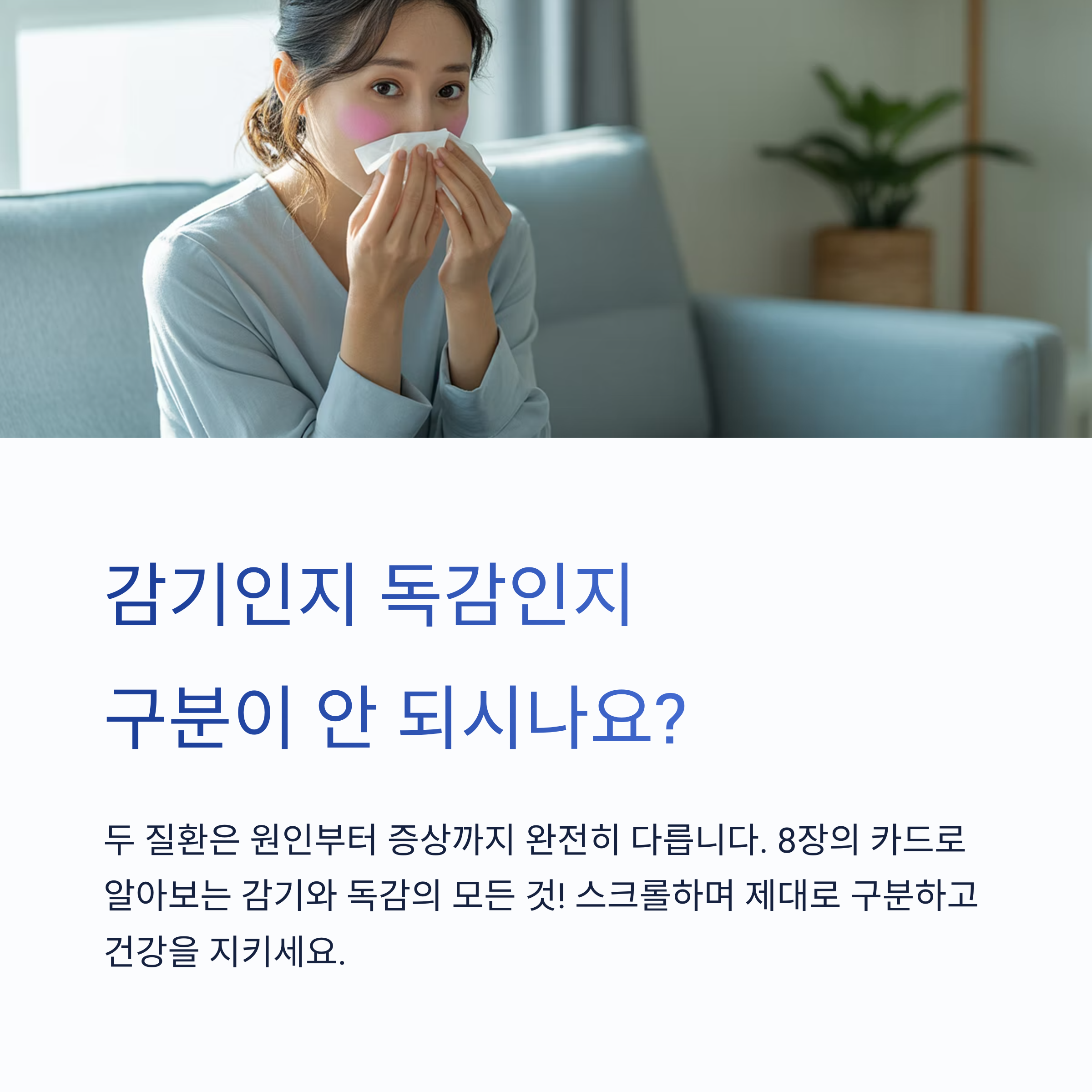 감기와 독감은 모두 흔한 호흡기 질환이지만, 그 원인과 증상, 경과가 다르기 때문에 정확히 구분하는 것이 매우 중요합니다. 감기는 주로 가벼운 증상으로 자연 치유되지만, 독감은 심한 전신 증상과 합병증으로 이어질 수 있으므로 조기 대응이 필요합니다.