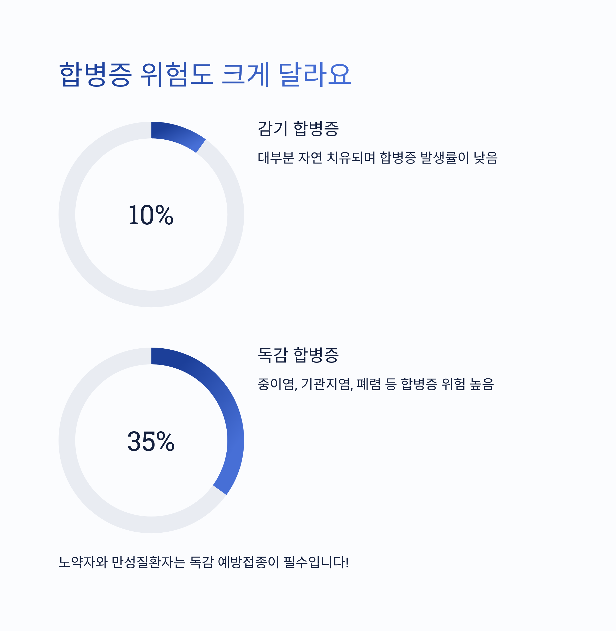 하지만 독감은 중이염, 기관지염, 폐렴 등의 합병증으로 진행될 수 있어 주의해야 합니다.