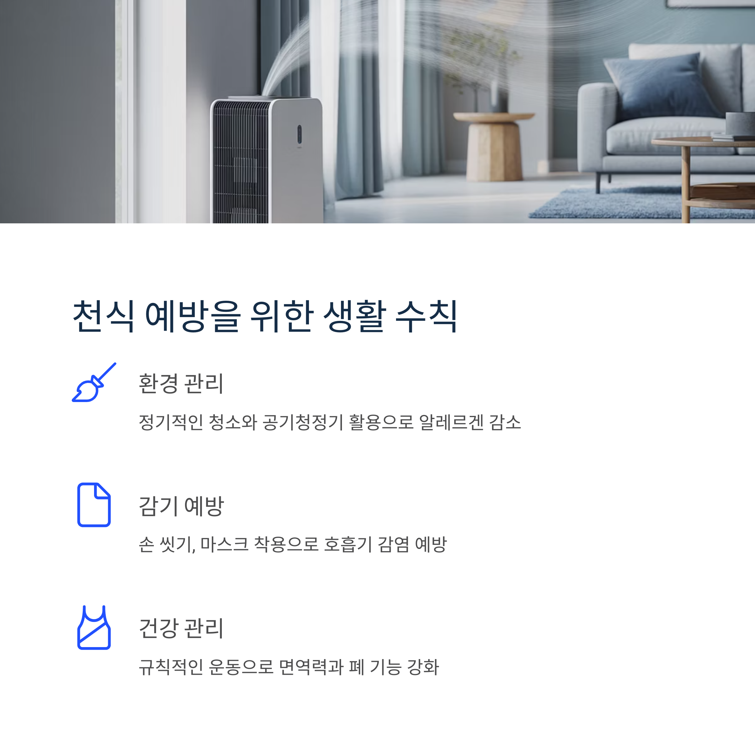 | 환경 관리 | 집먼지 제거, 공기청정기 활용 |