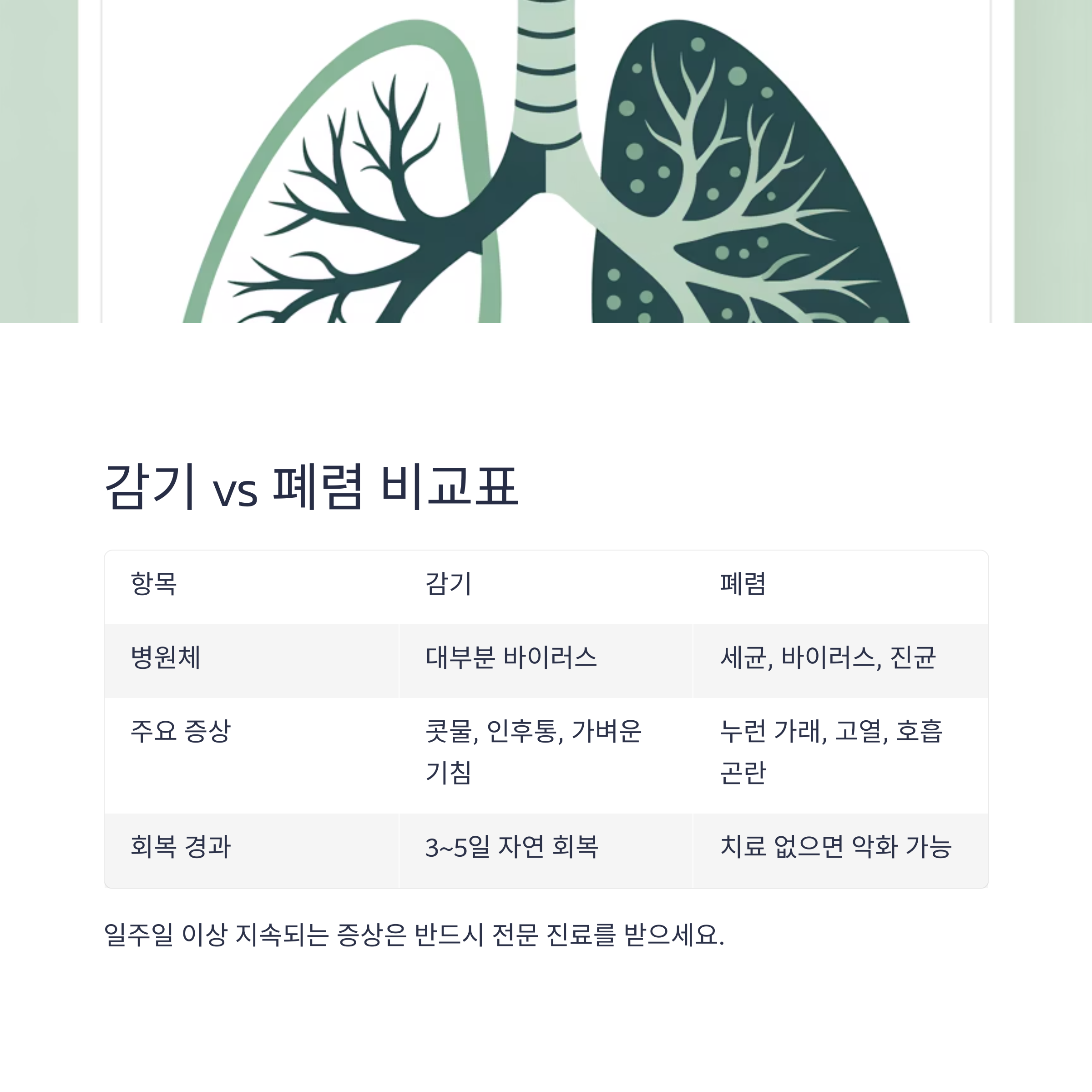 감기일까, 폐렴일까? 비교표로 쉽게 확인하세요
