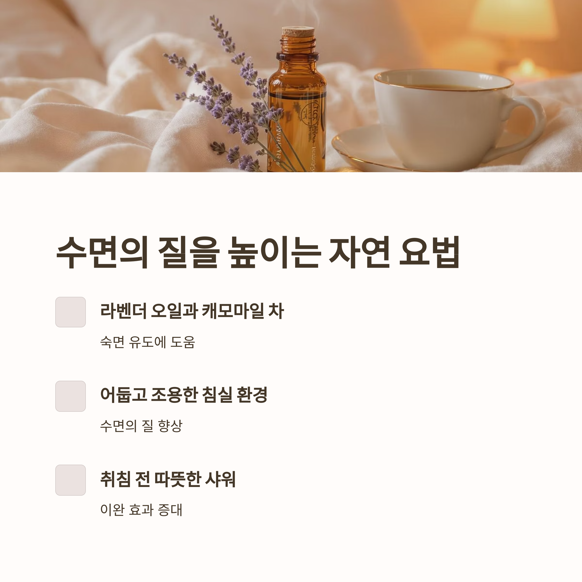 도움이 됩니다. 침실 환경을 어둡고 조용하게 유지하는 것도 중요합니다.