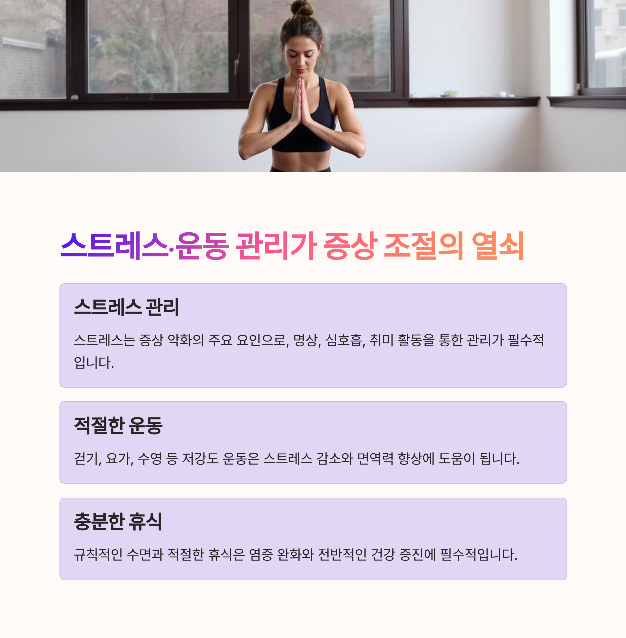 식단뿐만 아니라 생활 전반의 균형이 증상 완화에 결정적인 영향을 줍니다.