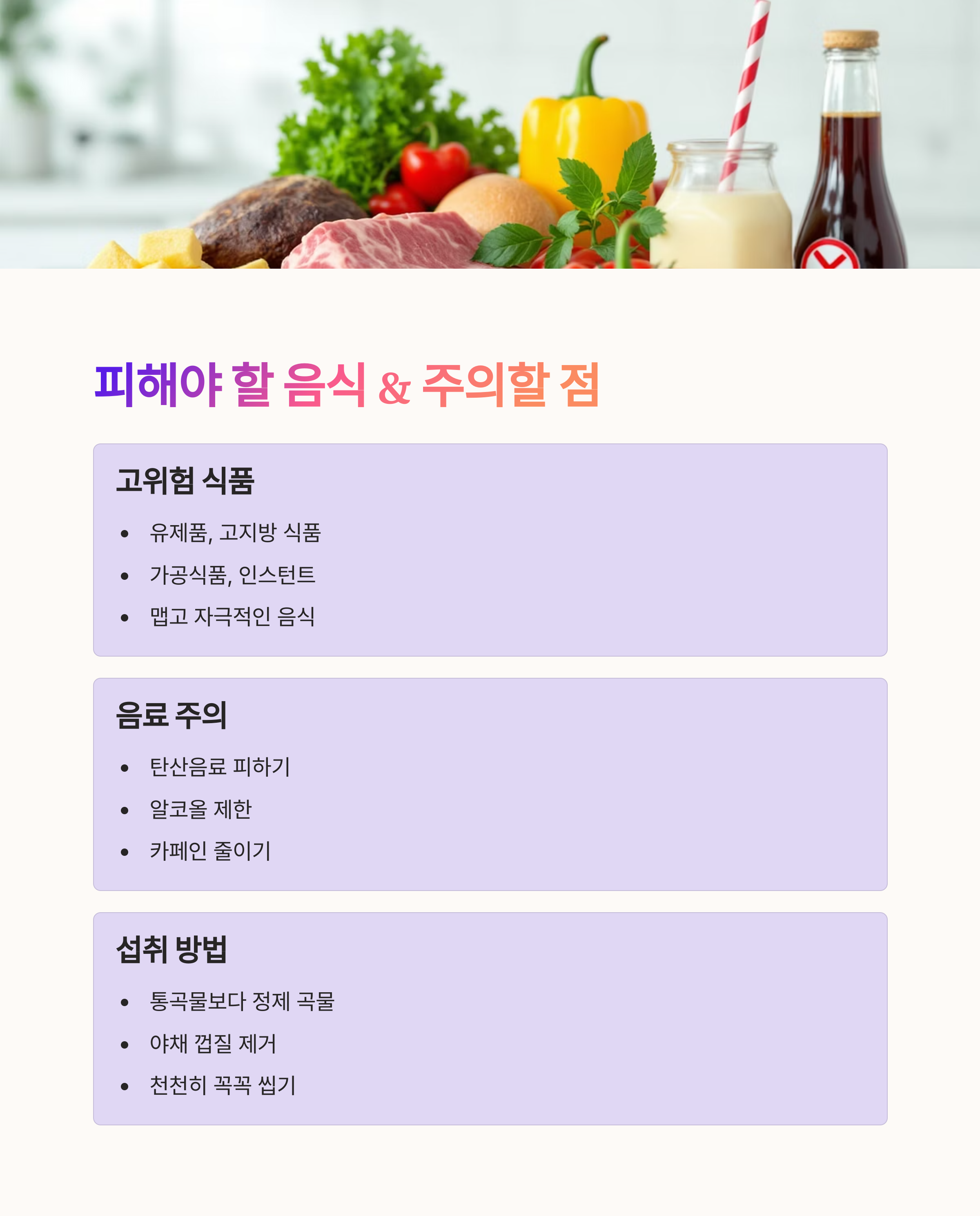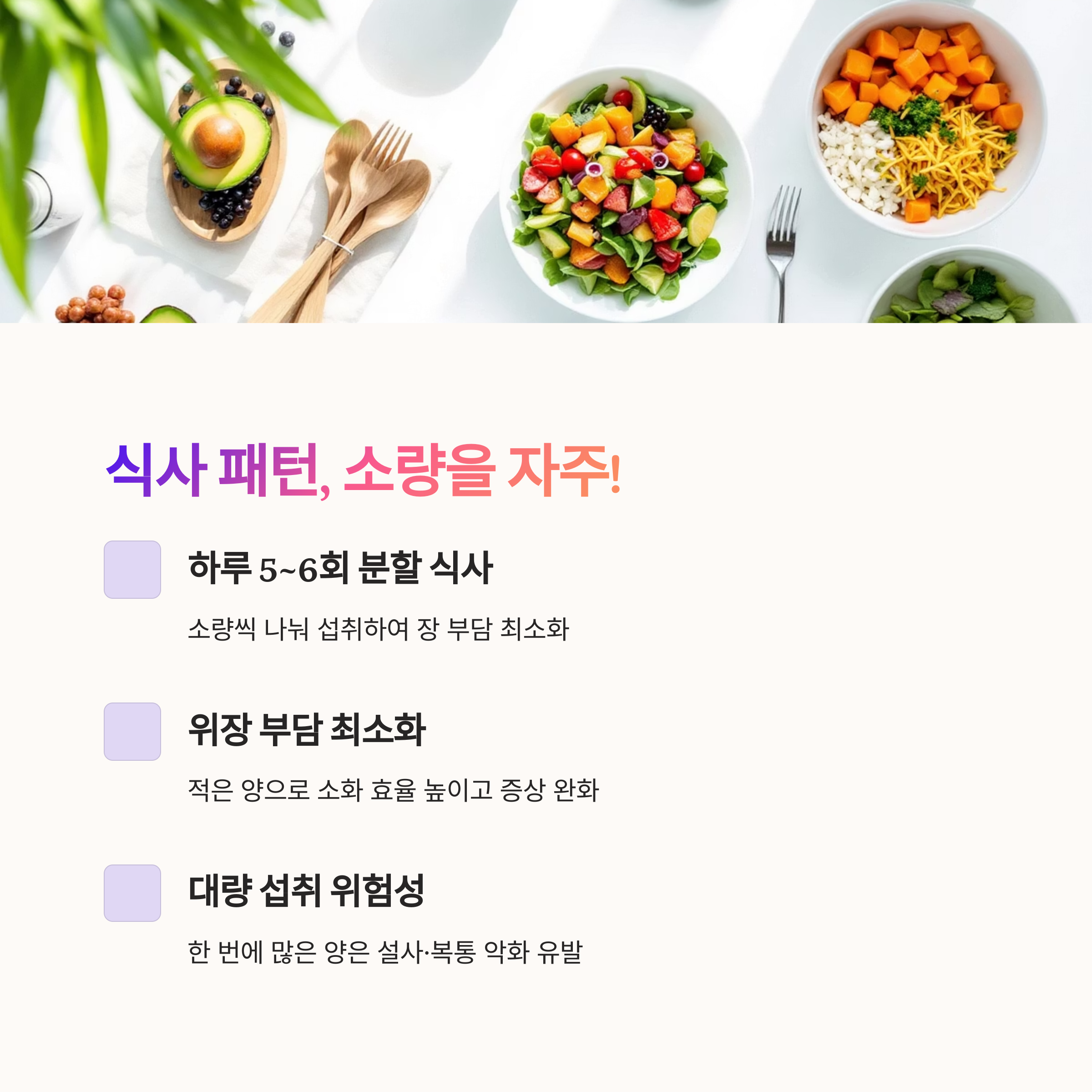 소화 부담을 줄이고 증상을 완화하는 데 효과적입니다.