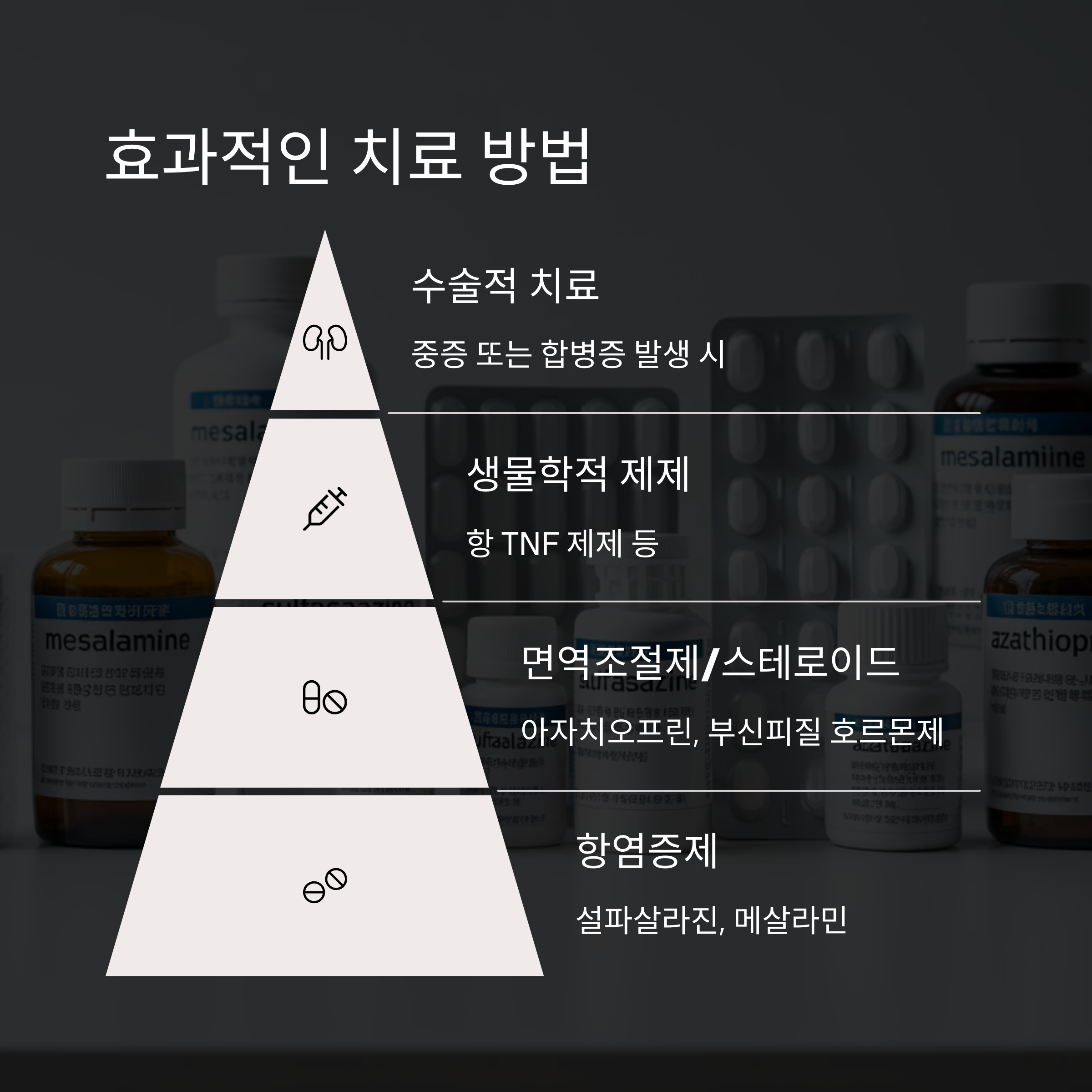 궤양성 대장염의 치료는 질환의 활성도와 범위, 환자의 상태에 따라 달라집니다.