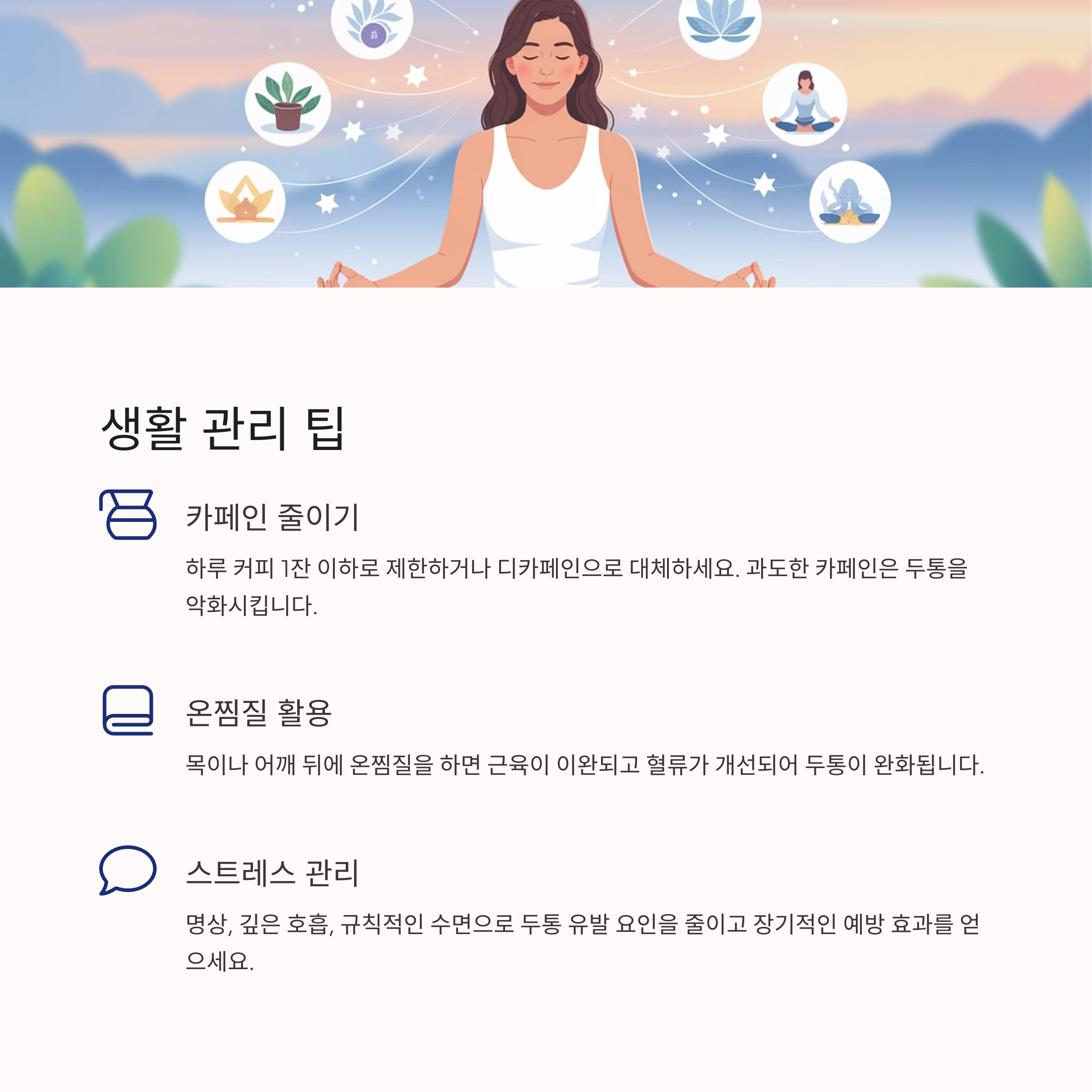 두통 유발 요인을 줄이고 장기적인 예방 효과를 가져옵니다.
