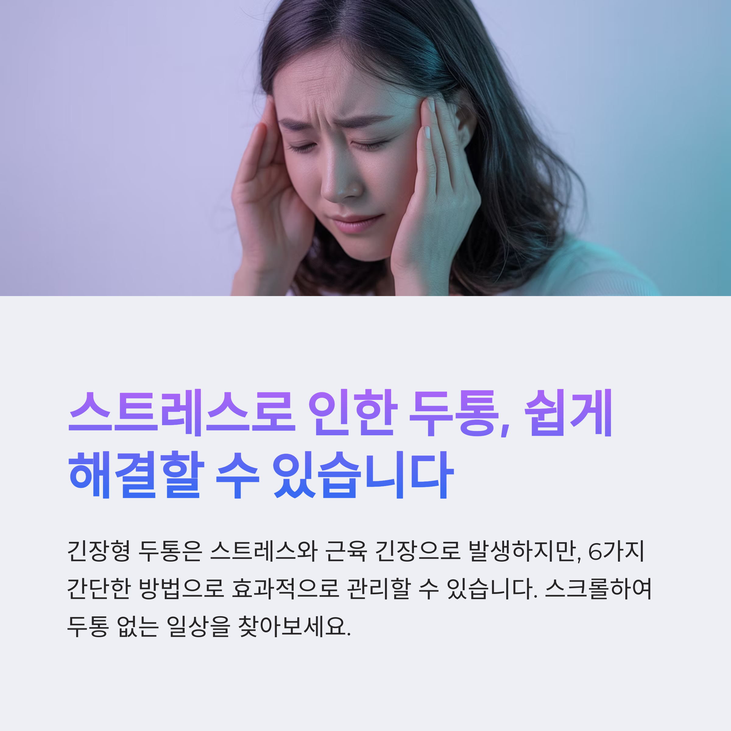 긴장형 두통은 전체 두통의 70%를 차지할 만큼 흔한 증상이며, 주로 스트레스와 근육 긴장으로 발생합니다. 이 통증은 머리 전체에 퍼져 일상생활에 큰 영향을 줄 수 있습니다. 하지만 꾸준한 습관 개선과 적절한 완화 방법을 병행하면 충분히 관리가 가능합니다. 마사지를 포함한 다양한 방법으로 증상을 줄이고 예방할 수 있는 실천법을 소개합니다.
