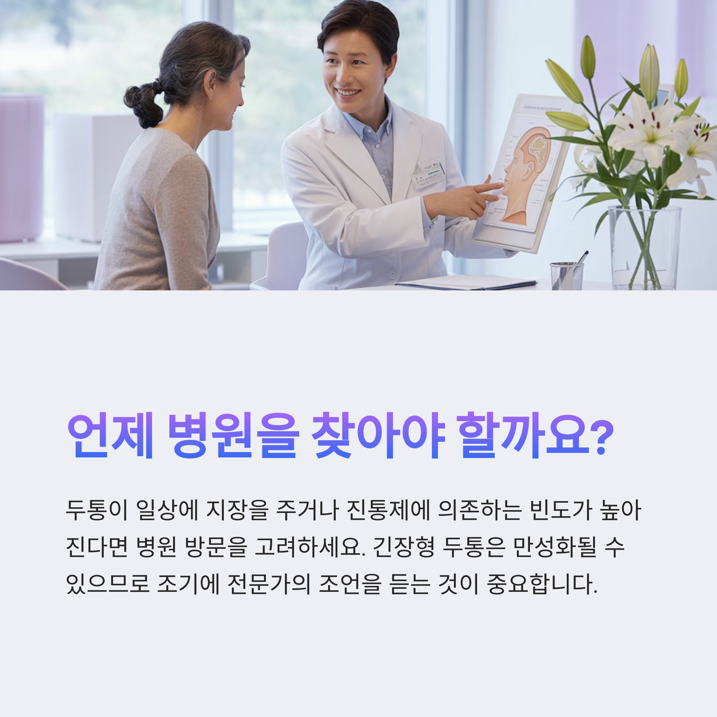 두통이 일상에 지장을 줄 정도거나 진통제에 의존하는 빈도가 높다면