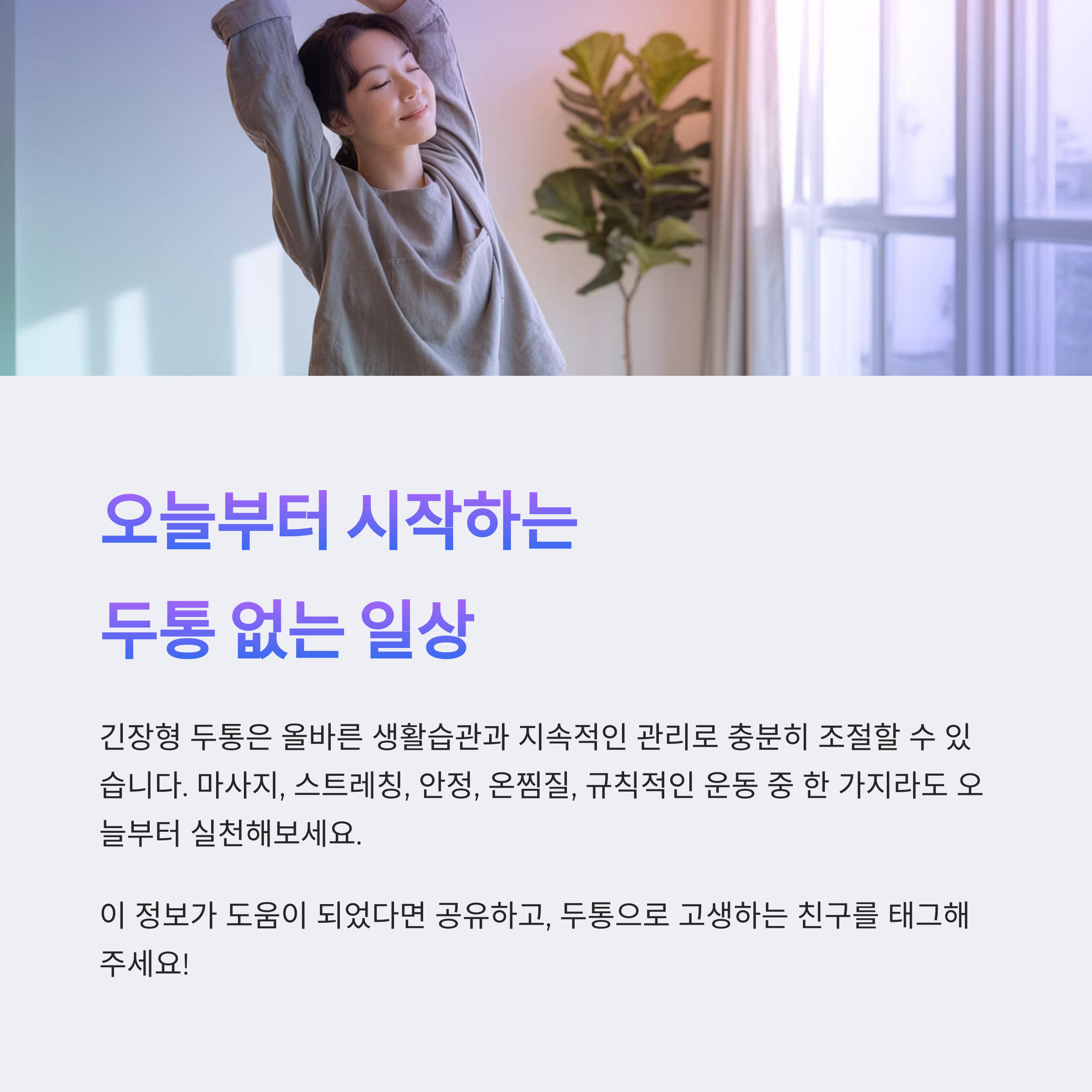 매일의 작은 실천이 두통 없는 건강한 삶으로 이어집니다.