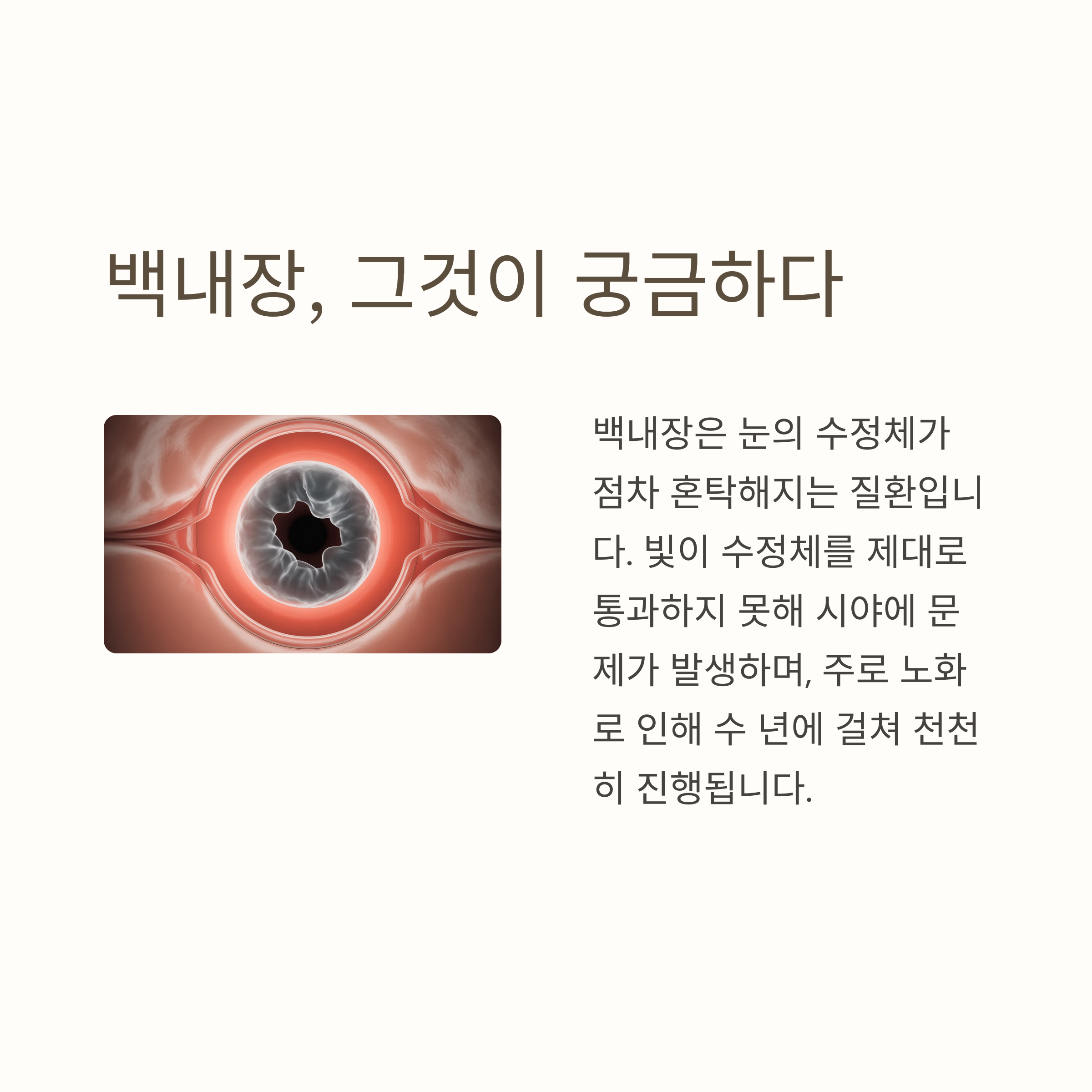 백내장은 단순히 나이 들어 생기는 증상이 아닙니다.