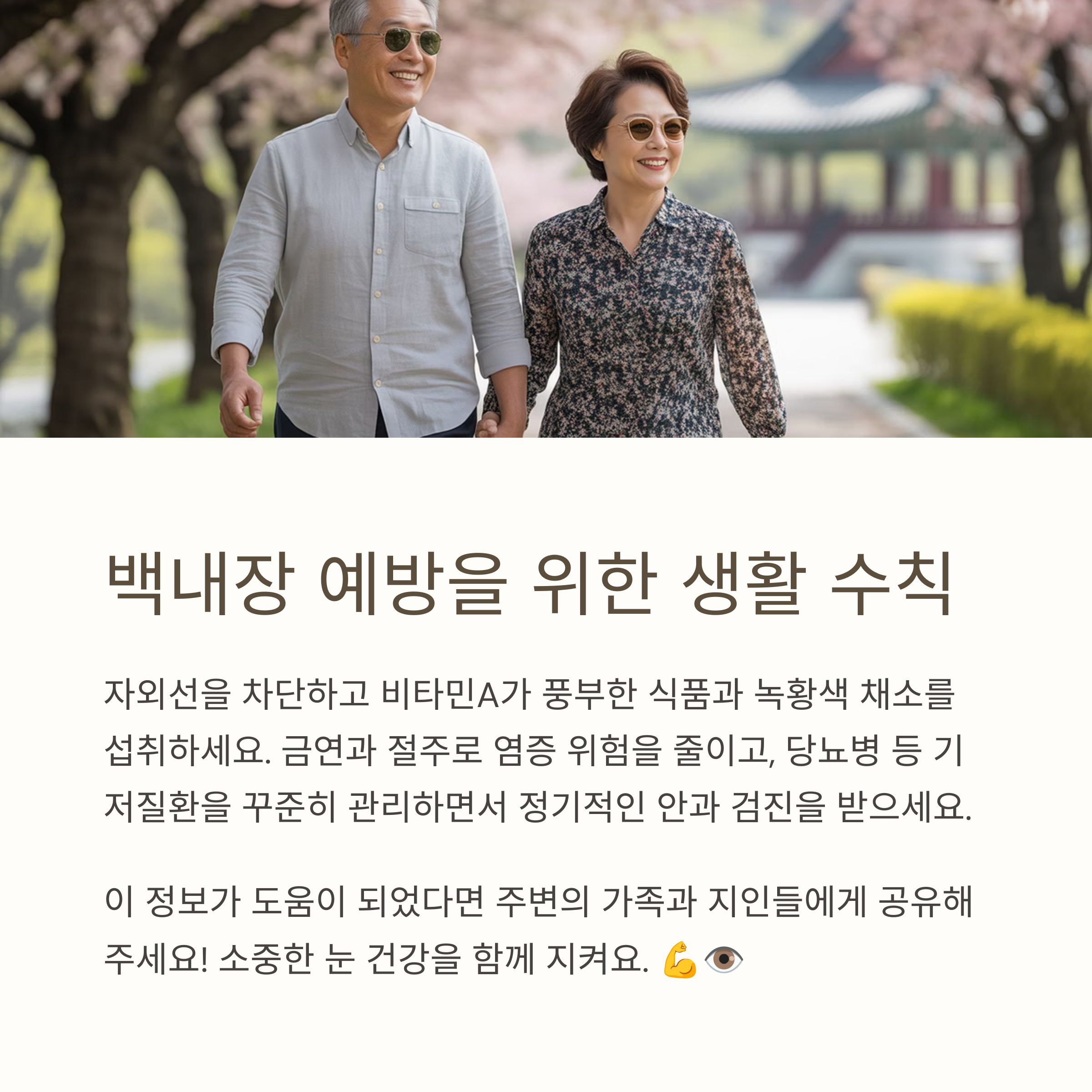 특히 조기 관리와 생활 습관 개선은 백내장 진행을 늦출 수 있습니다.