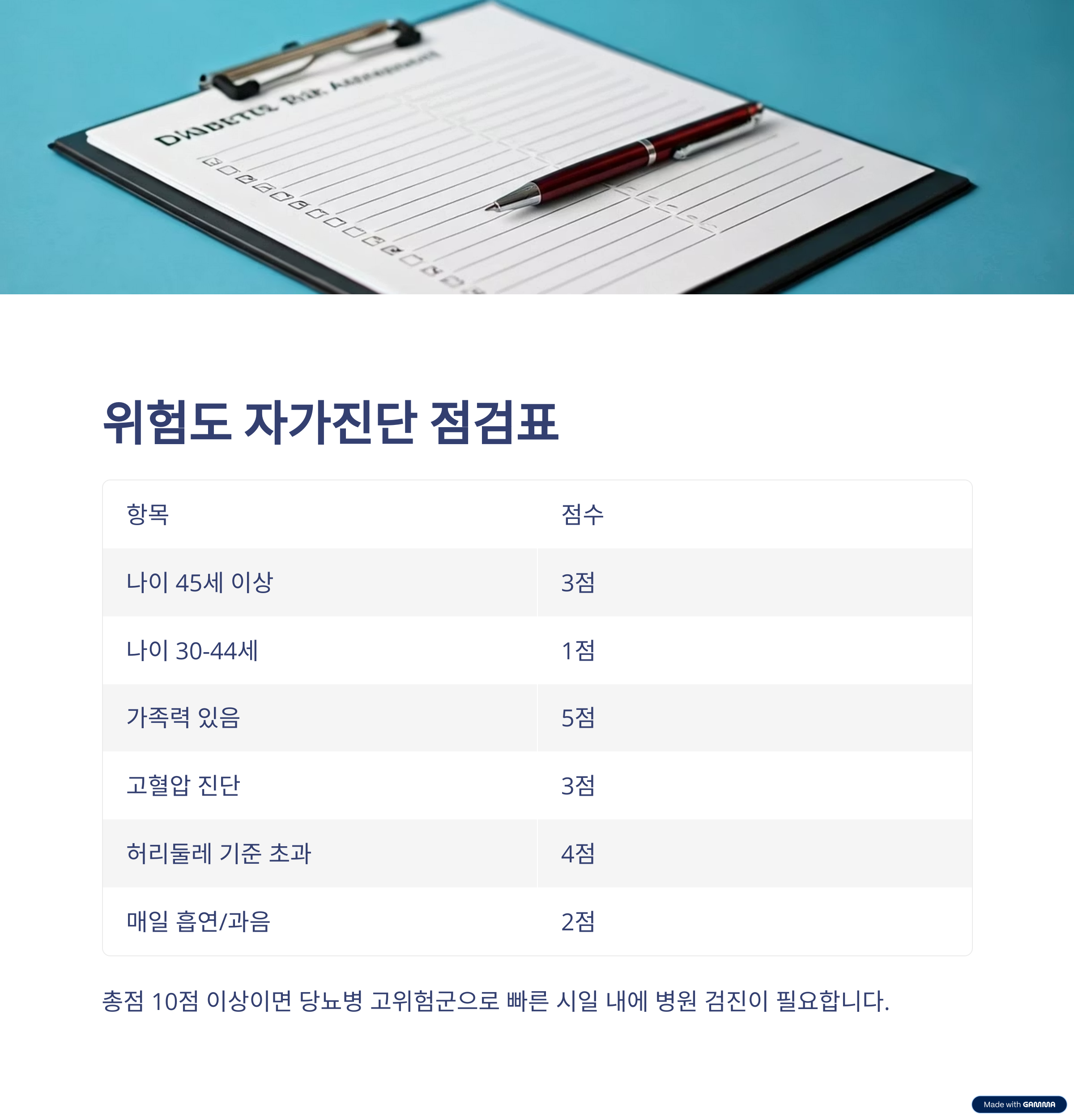 당뇨병 초기 자가진단 체크리스트