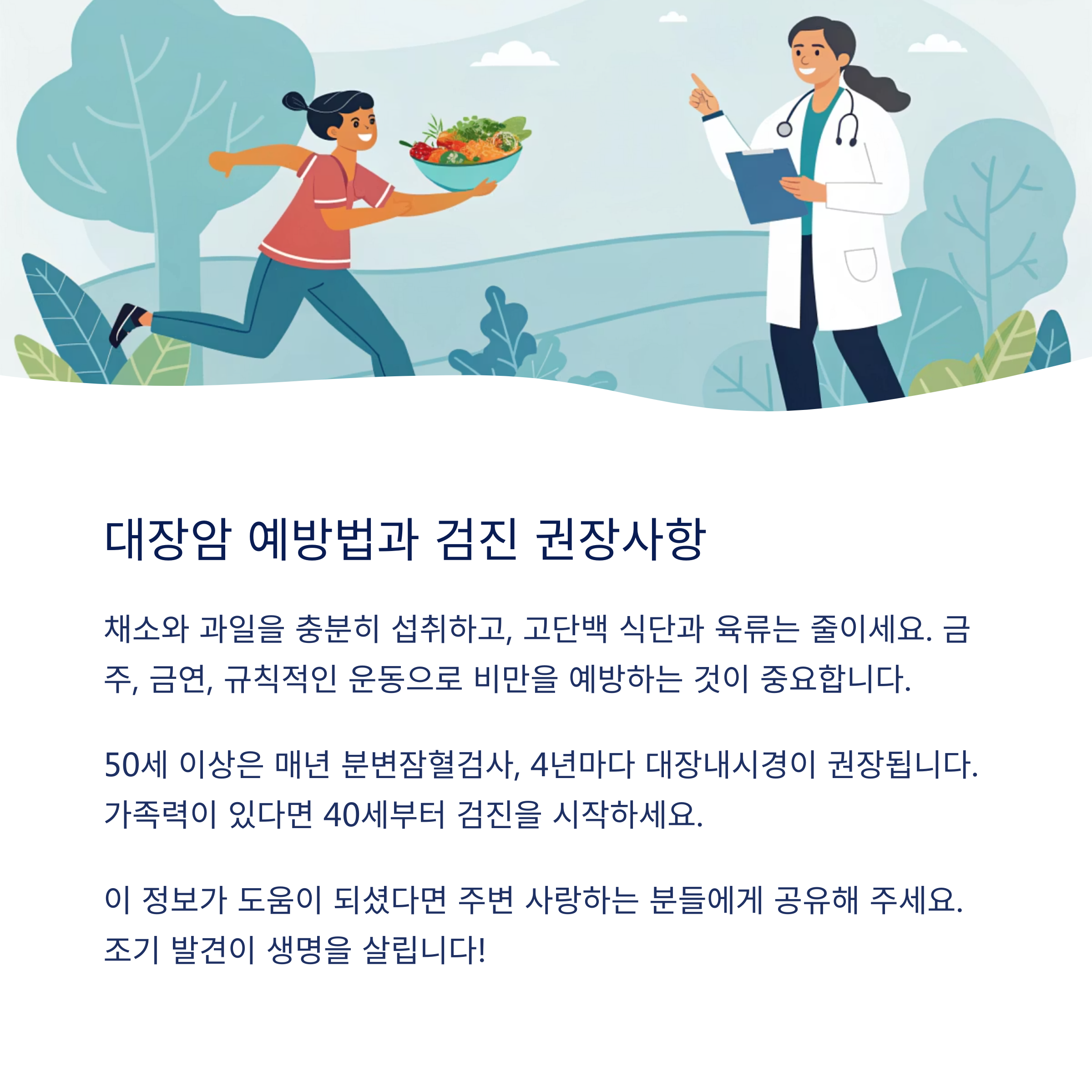 대장암은 조기 진단이 생존율에 절대적인 영향을 주기 때문입니다. 😯
