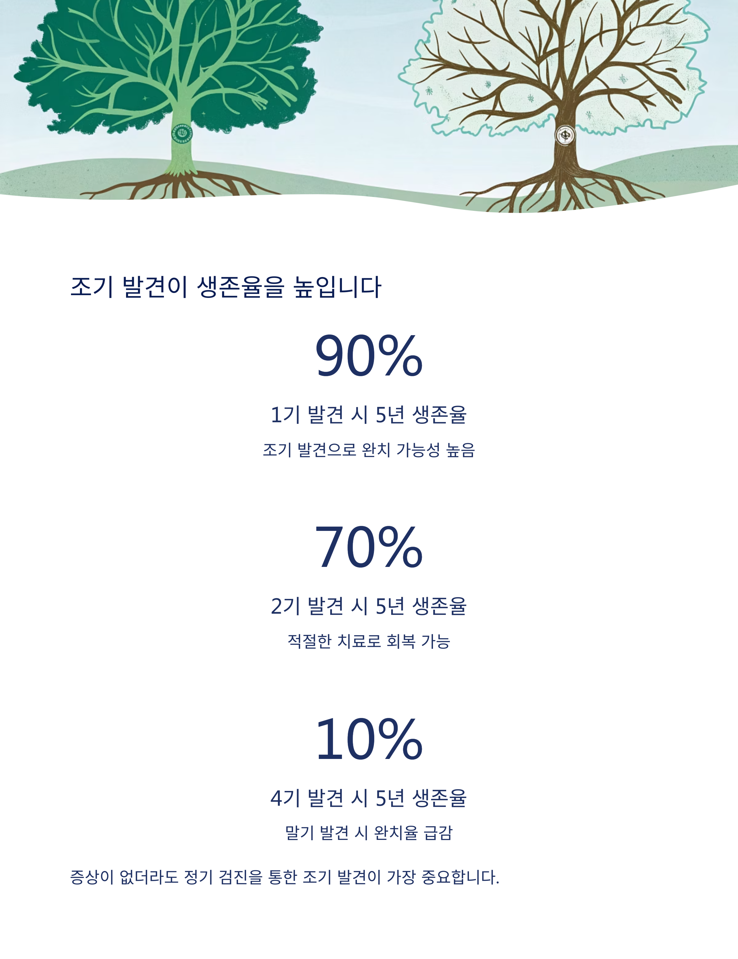 "초기에는 증상이 거의 없기 때문에 정기 검진이 유일한 생명줄이 됩니다" 🩺