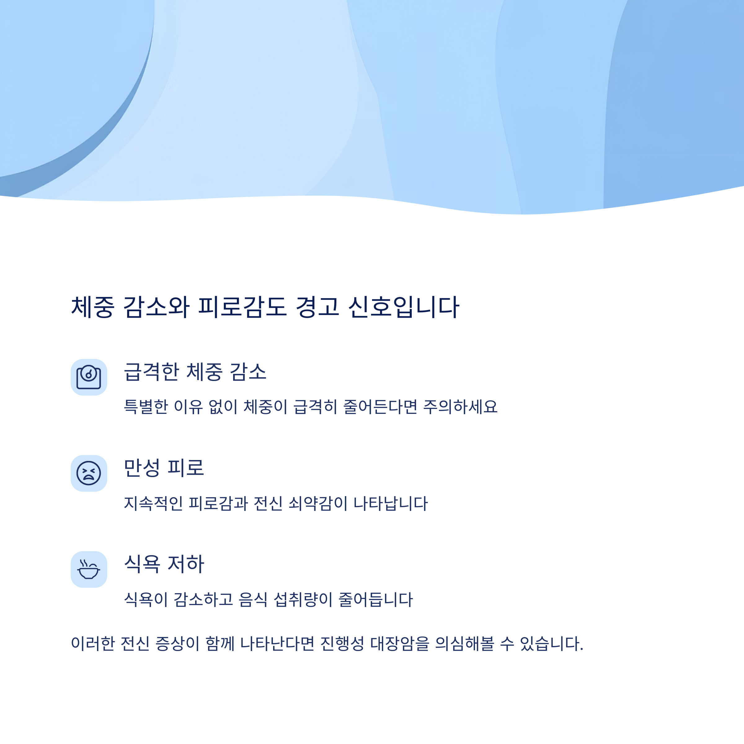 "단순한 피로도 암의 전조일 수 있으므로 무시하지 마세요" 💡