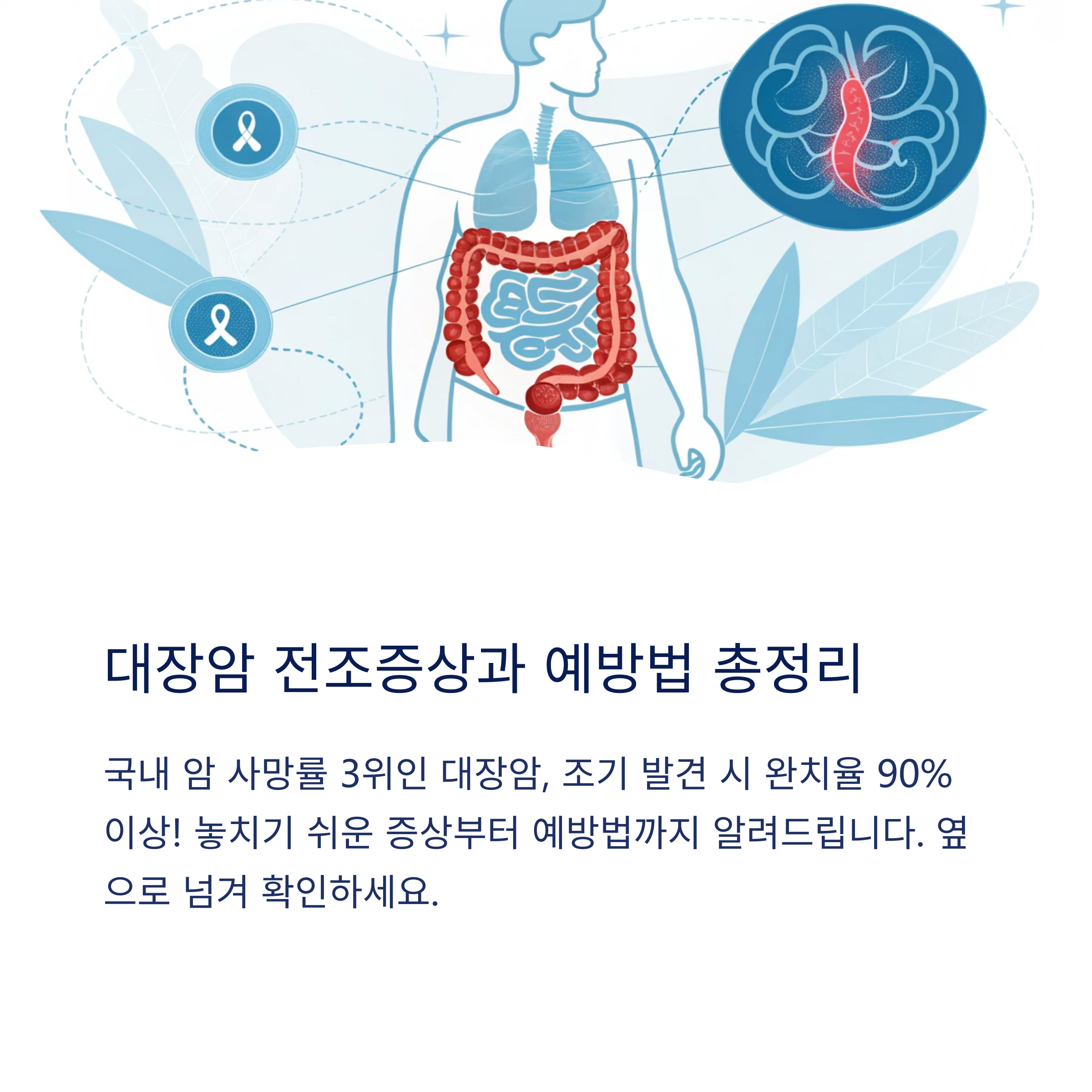 대장암은 초기에 발견될 경우 완치 가능성이 매우 높습니다.