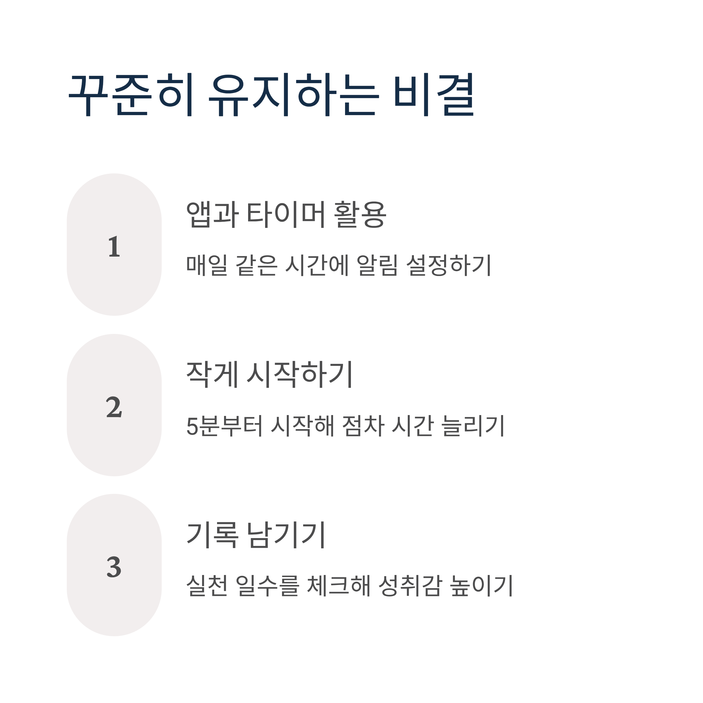 작게 시작해 점차 시간을 늘리는 방식으로 부담 없이 이어가는 것이 좋습니다.