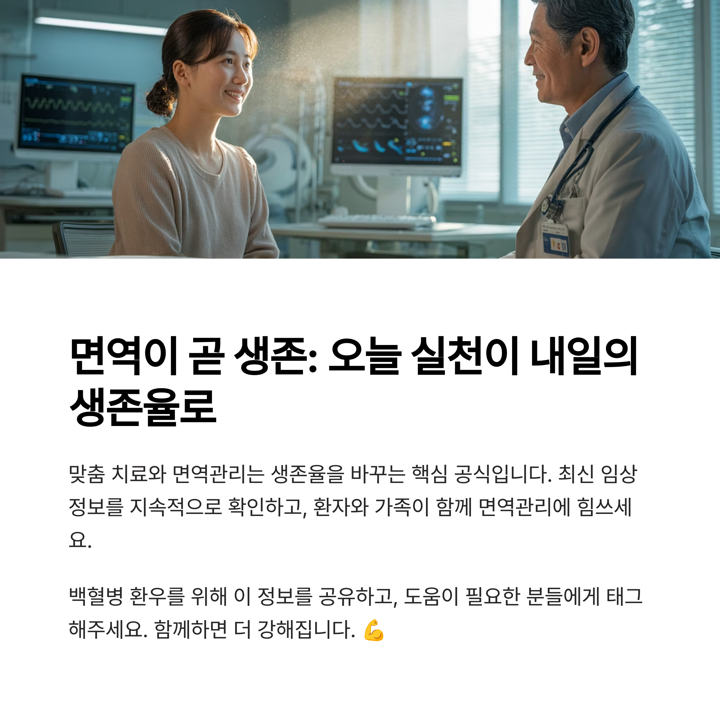 백혈병 치료에서 면역 관리의 중요성은 생존율과 직결되는 필수 요소입니다