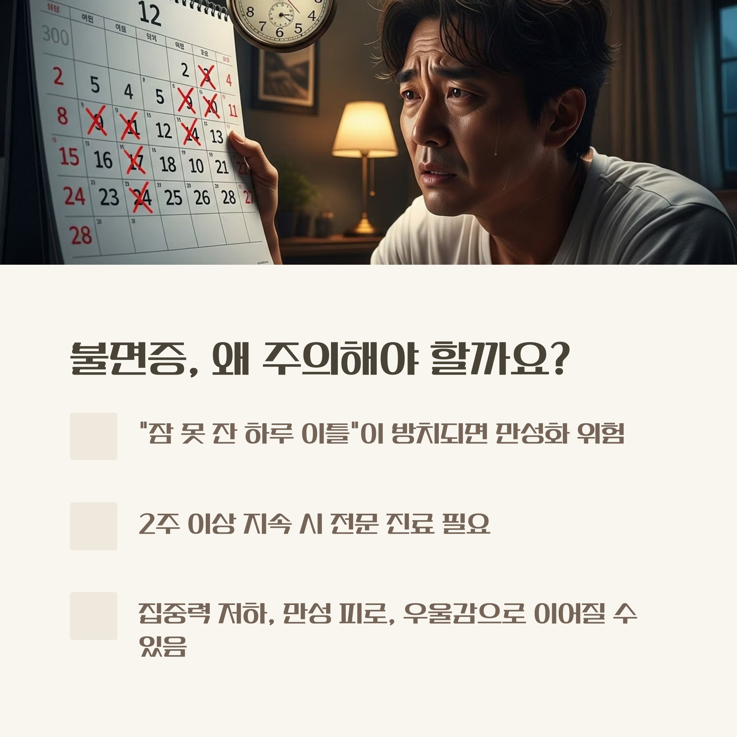 불면증은 단순히 잠을 못 자는 것 이상의 문제입니다.
