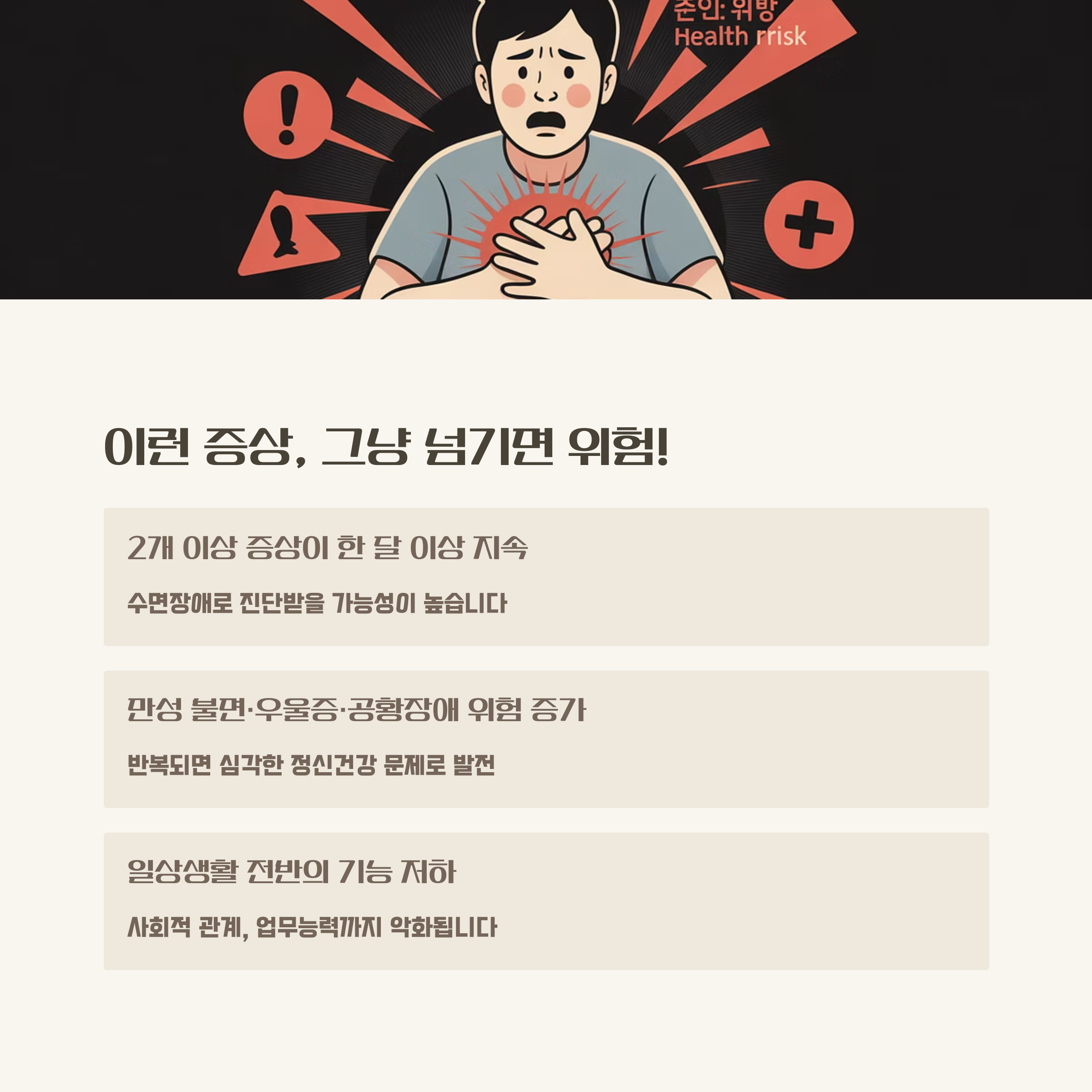 일시적인 스트레스를 넘어서 만성 수면장애로 판단해야 합니다.
