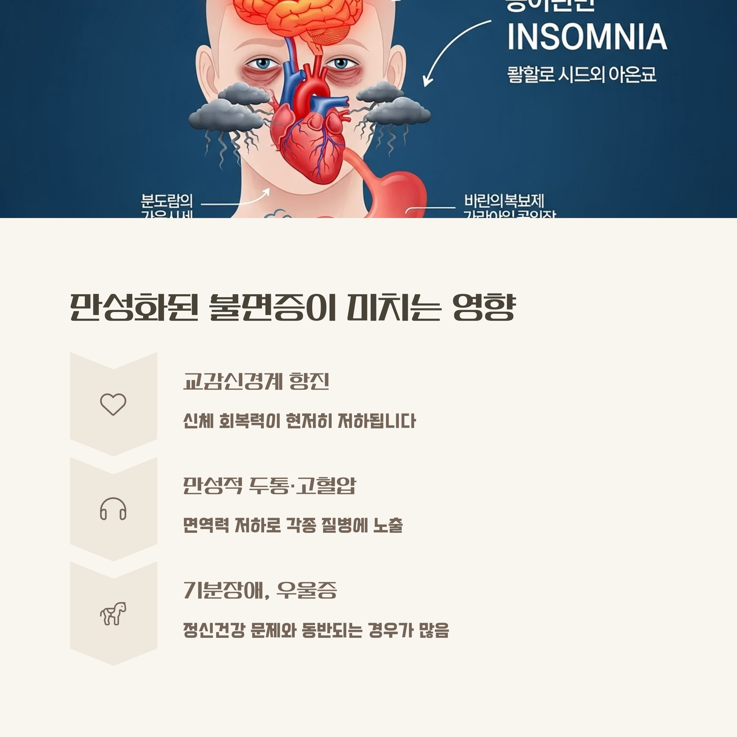 불면증은 단순히 잠을 못 자는 것 이상의 문제입니다.