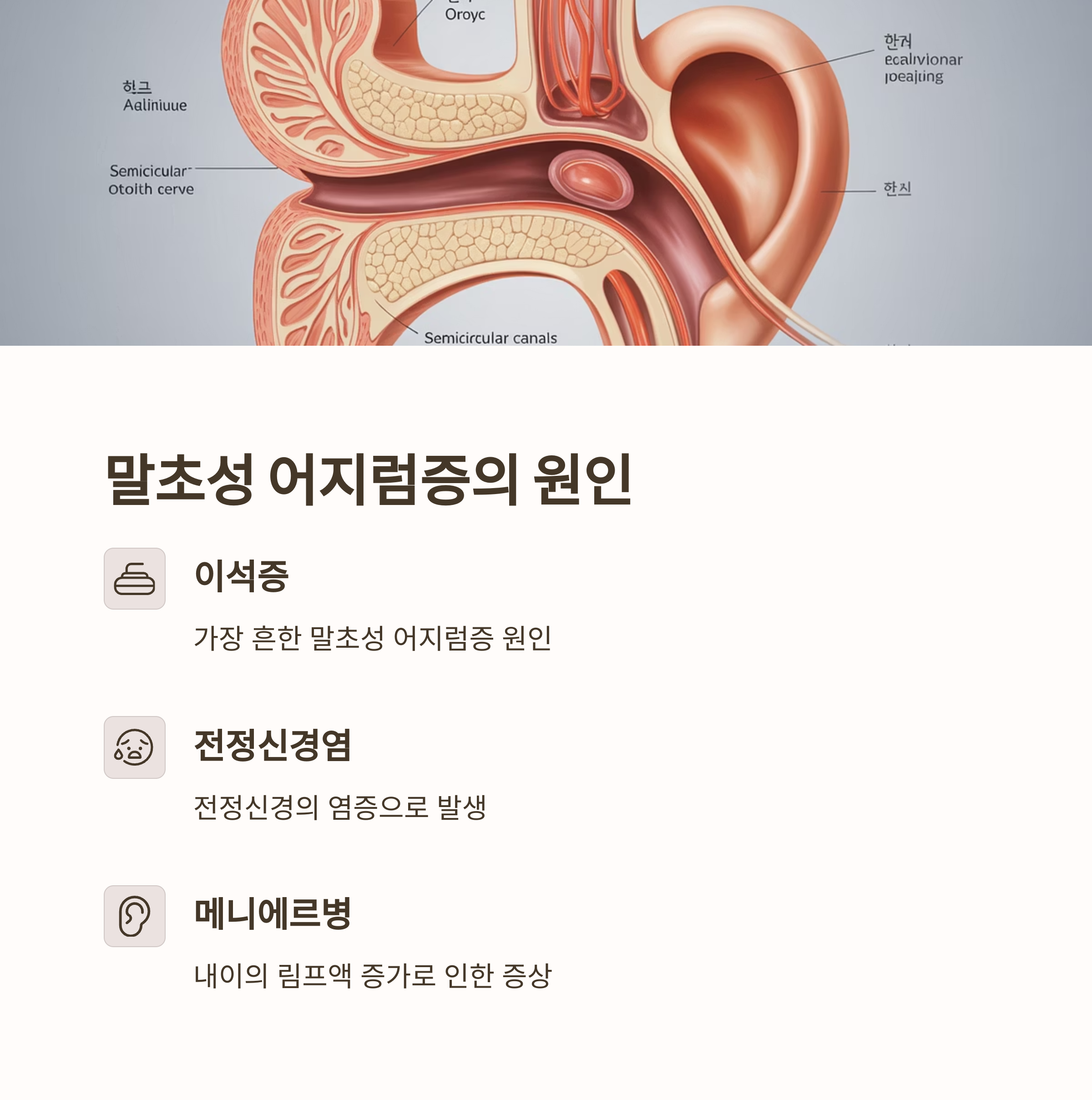 말초성 어지럼증은 귀 안쪽의 전정기관 이상에서 비롯되며 대표적으로