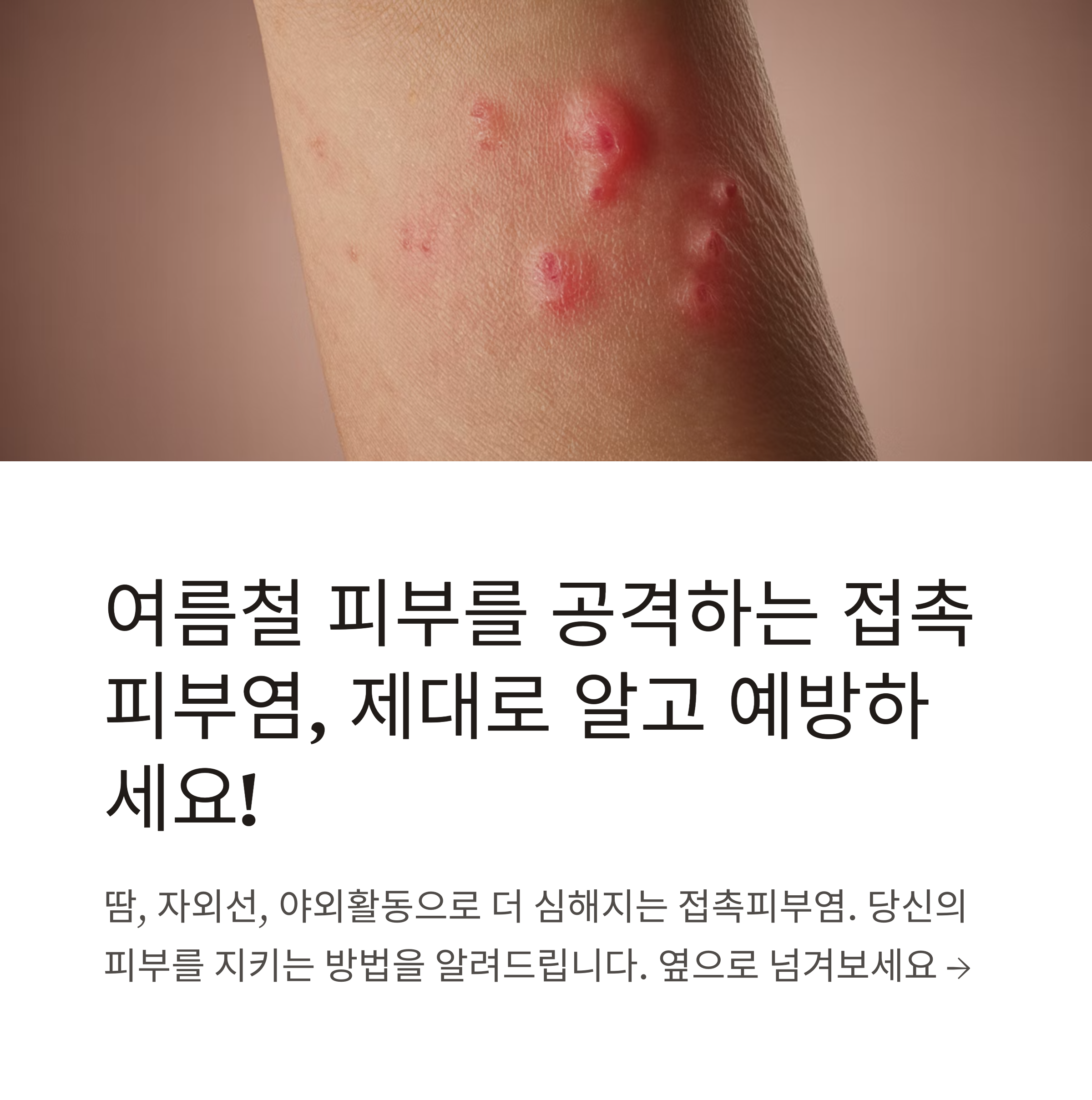 여름은 땀이 많고 자외선 노출도 많아지며 벌레나 식물과의 접촉 가능성도 높습니다.