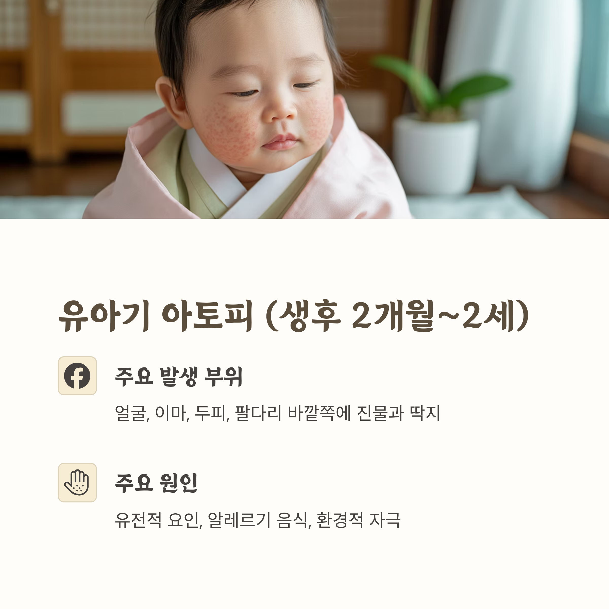 유아기(생후 2개월~2세)는 아토피 피부염의 초기 발병 시기로