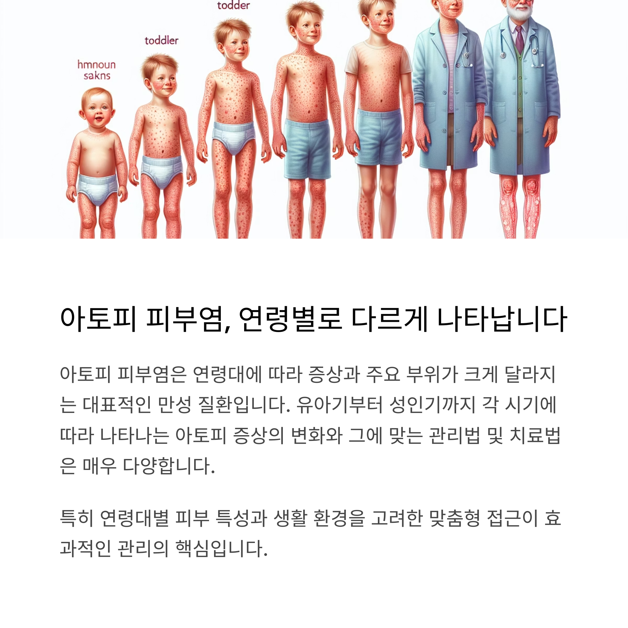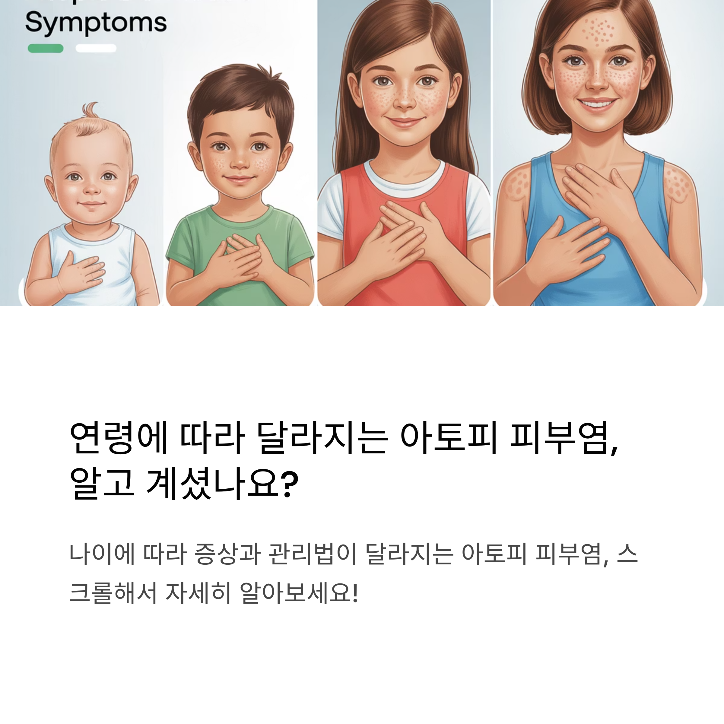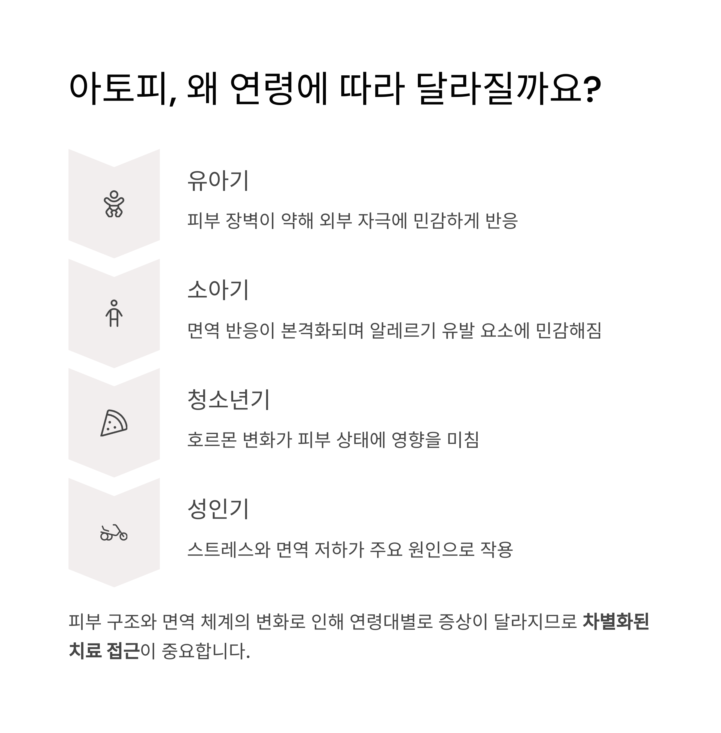 아토피 피부염은 연령대에 따라 증상과 주요 부위가 크게 달라지는 대표적인 만성 질환입니다.