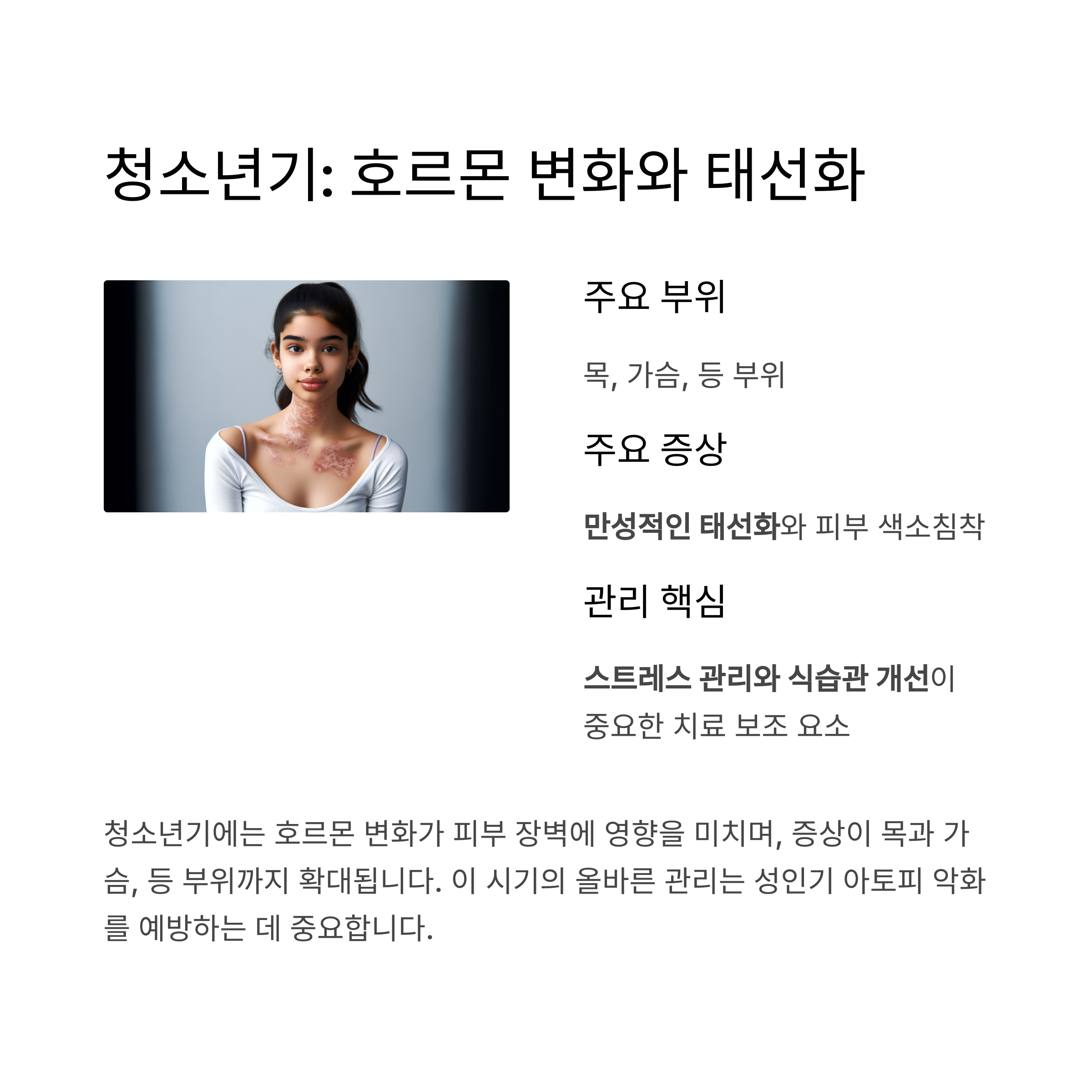 이 글에서는 유아기부터 성인기까지 각 시기에 따라 나타나는 아토피 증상의 변화와