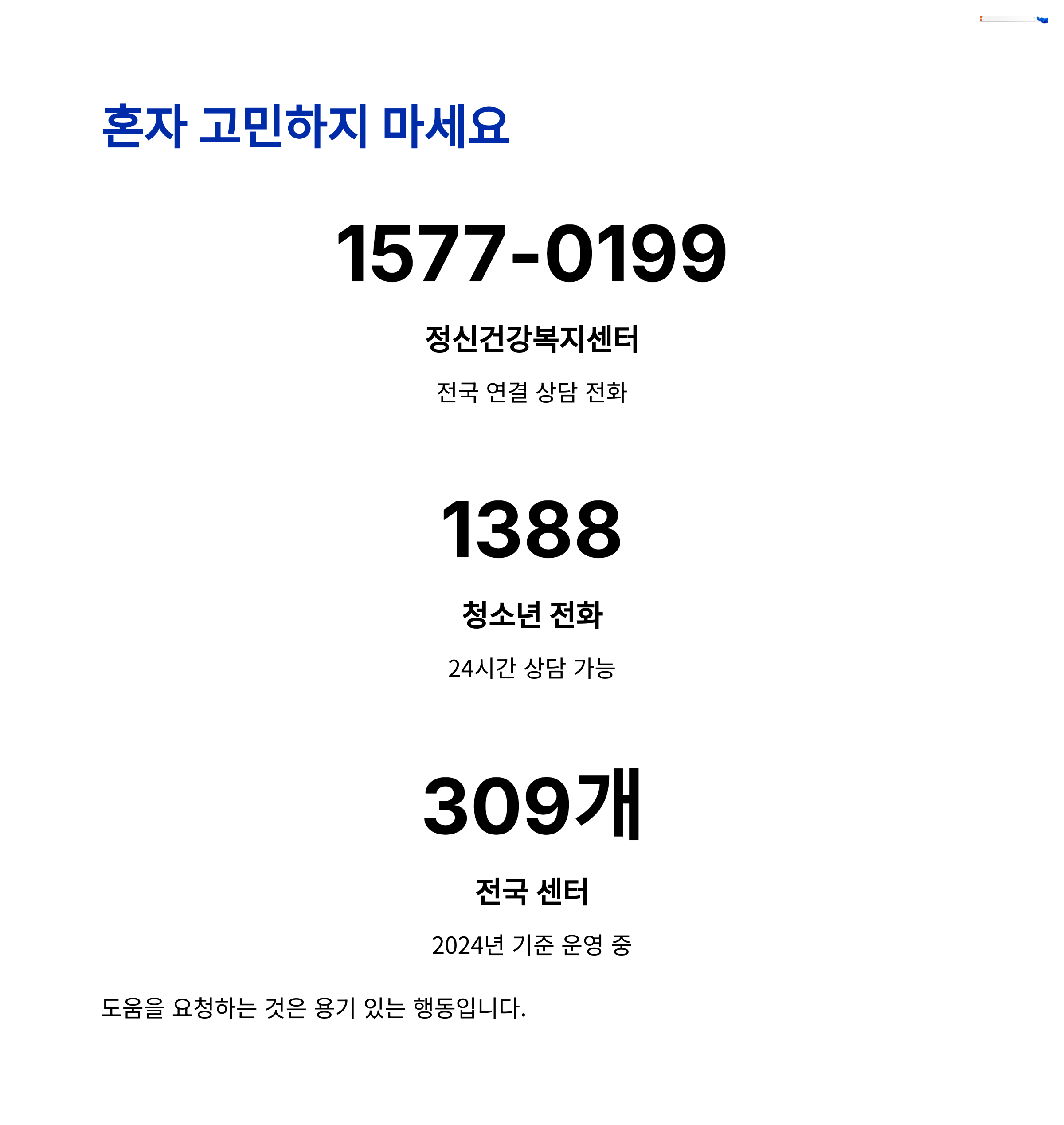 "우울은 혼자 해결할 문제가 아닙니다. 도움을 요청하는 용기, 그것이 회복의 첫걸음입니다."