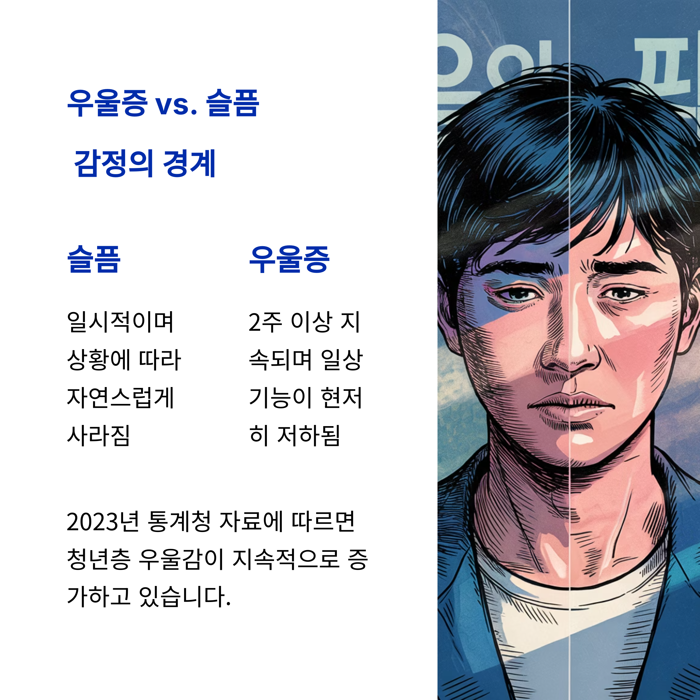 "일상의 모든 일이 무기력하고 무의미하게 느껴진다면, 단순한 슬픔이 아닌 우울증일 수 있습니다."
