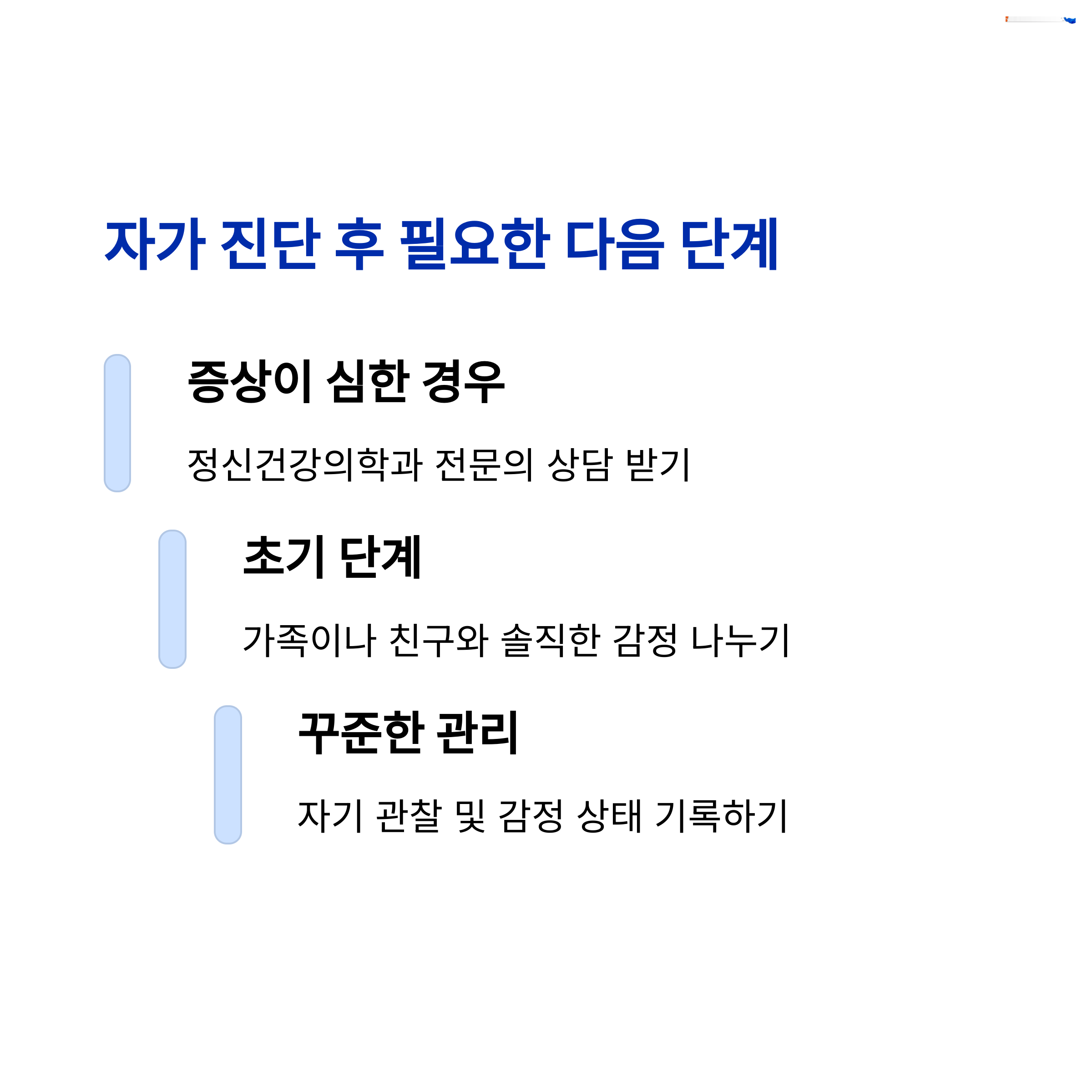 자가 진단 후 우울이 의심된다면 망설이지 말고 전문가의 도움을 받는 것이 중요합니다.
