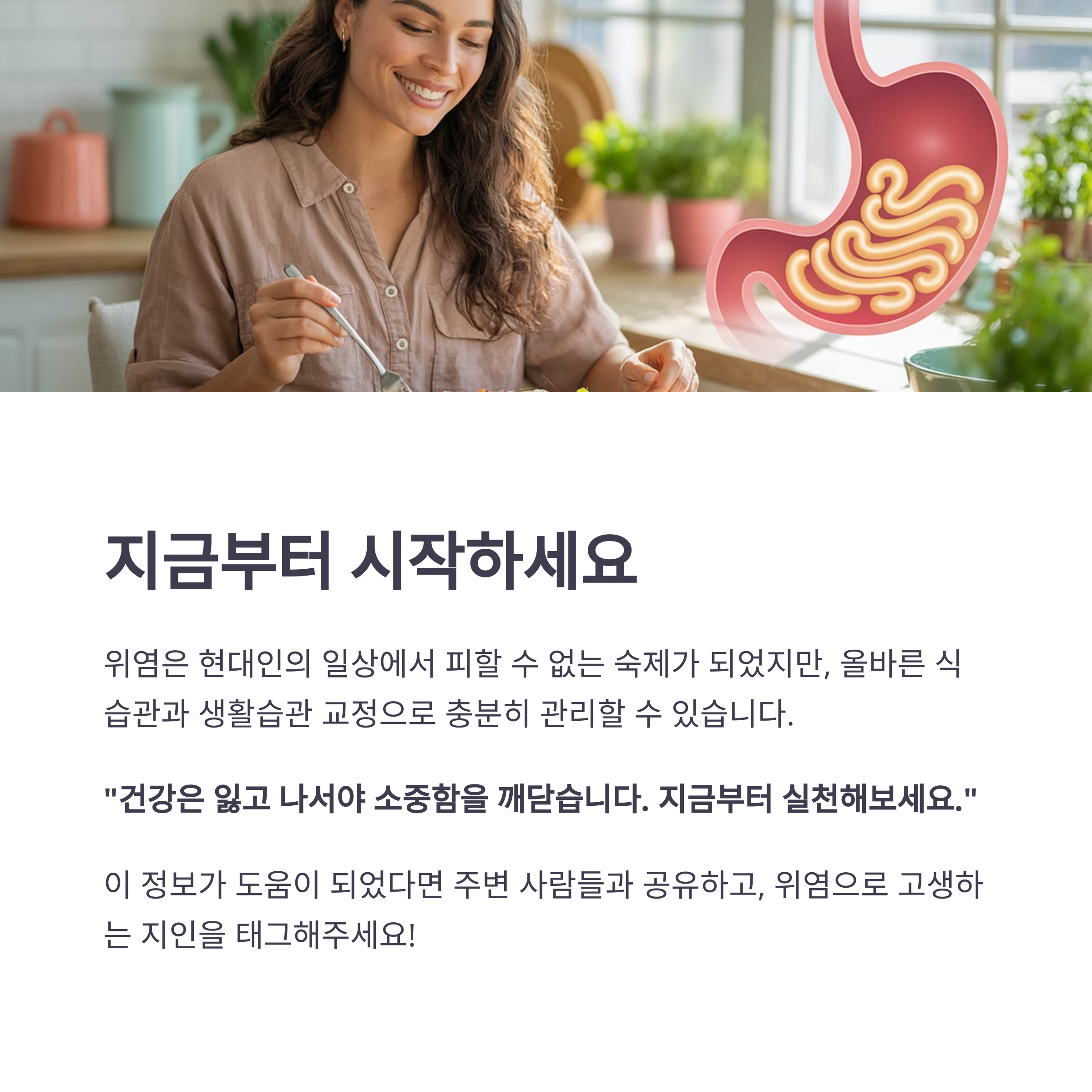 하지만 위염은 올바른 식습관과 생활습관 교정을 통해 충분히 관리할 수 있습니다.