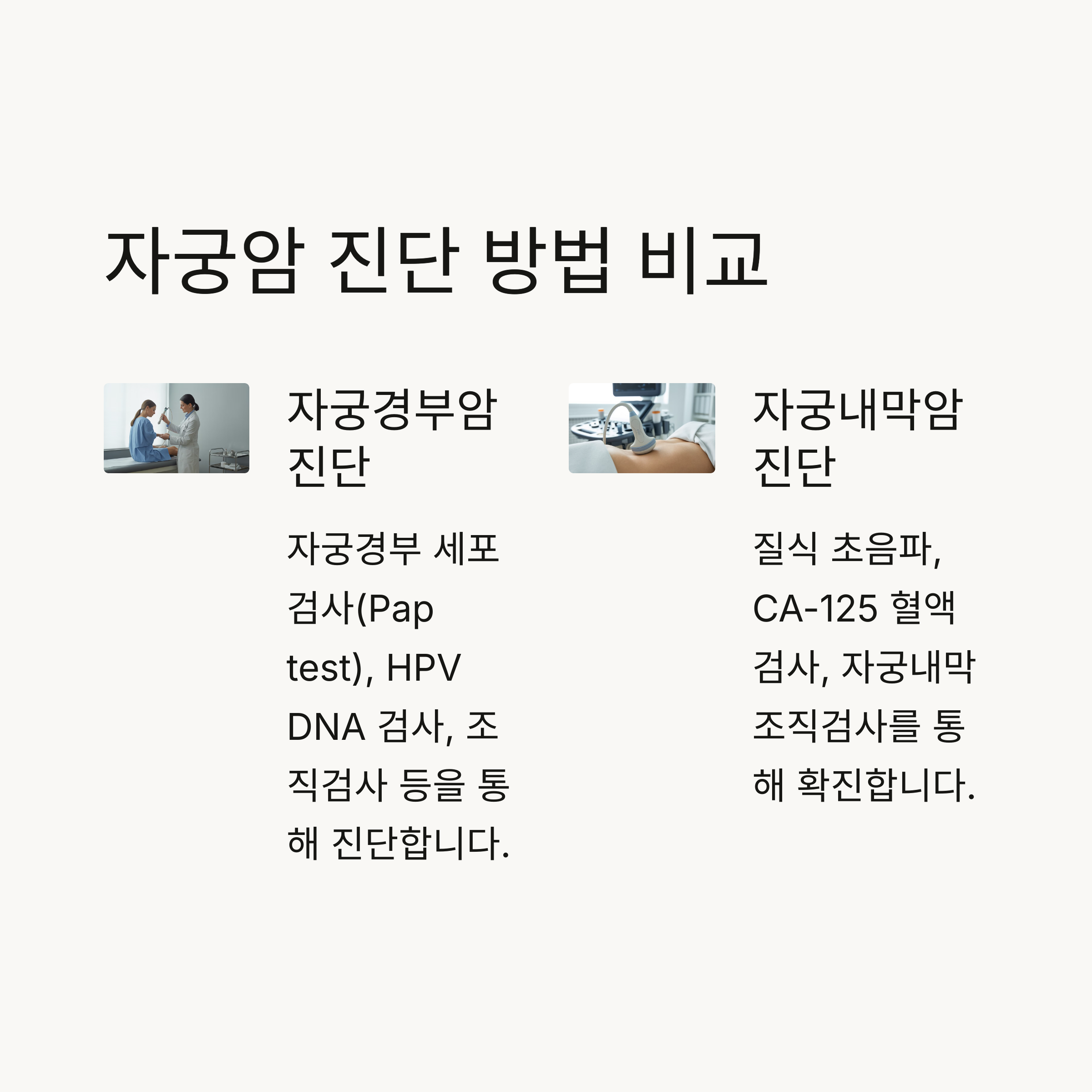 자궁암은 종류에 따라 진단 검사도 다릅니다.