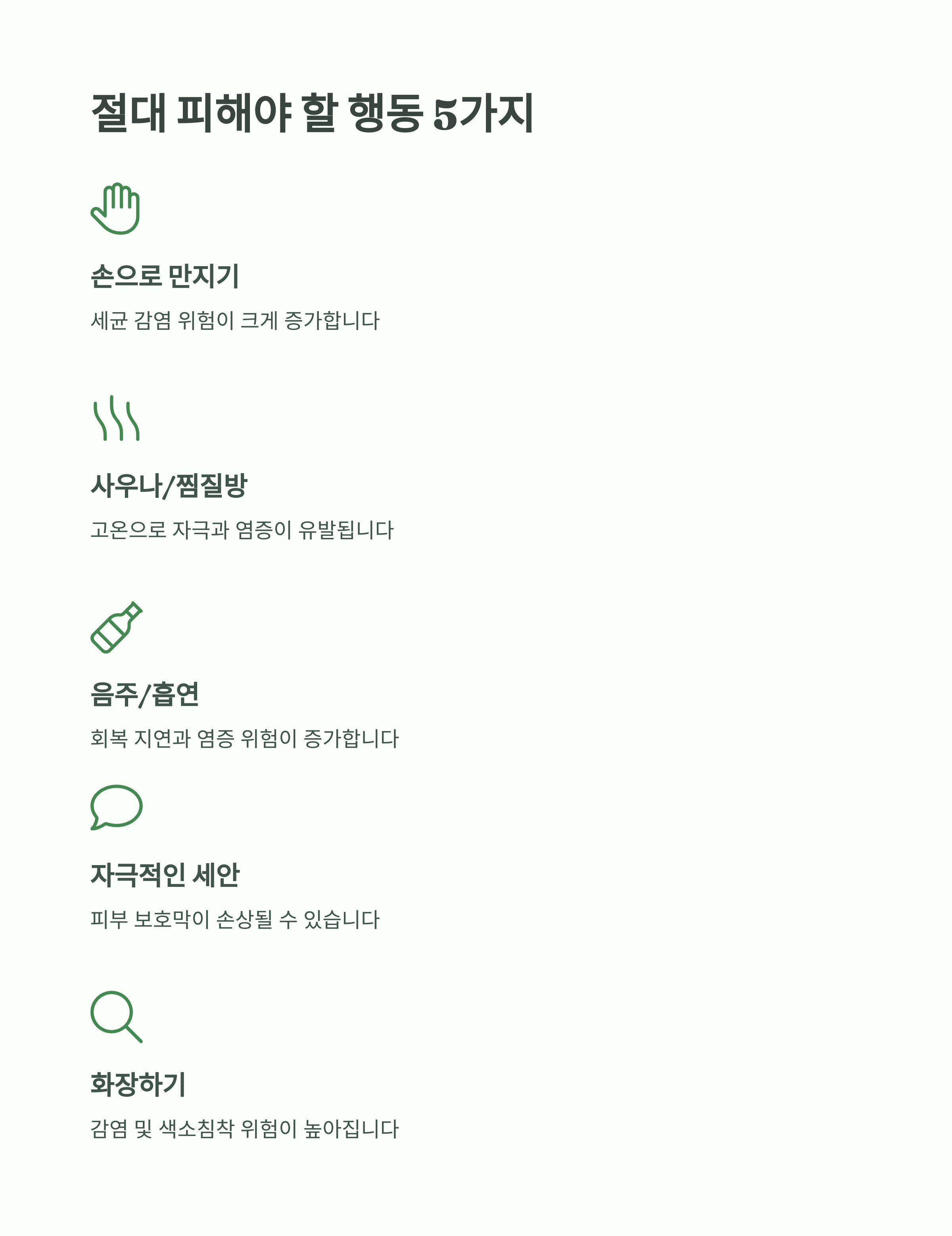 | 손으로 만지기 | 세균 감염 위험 증가 |