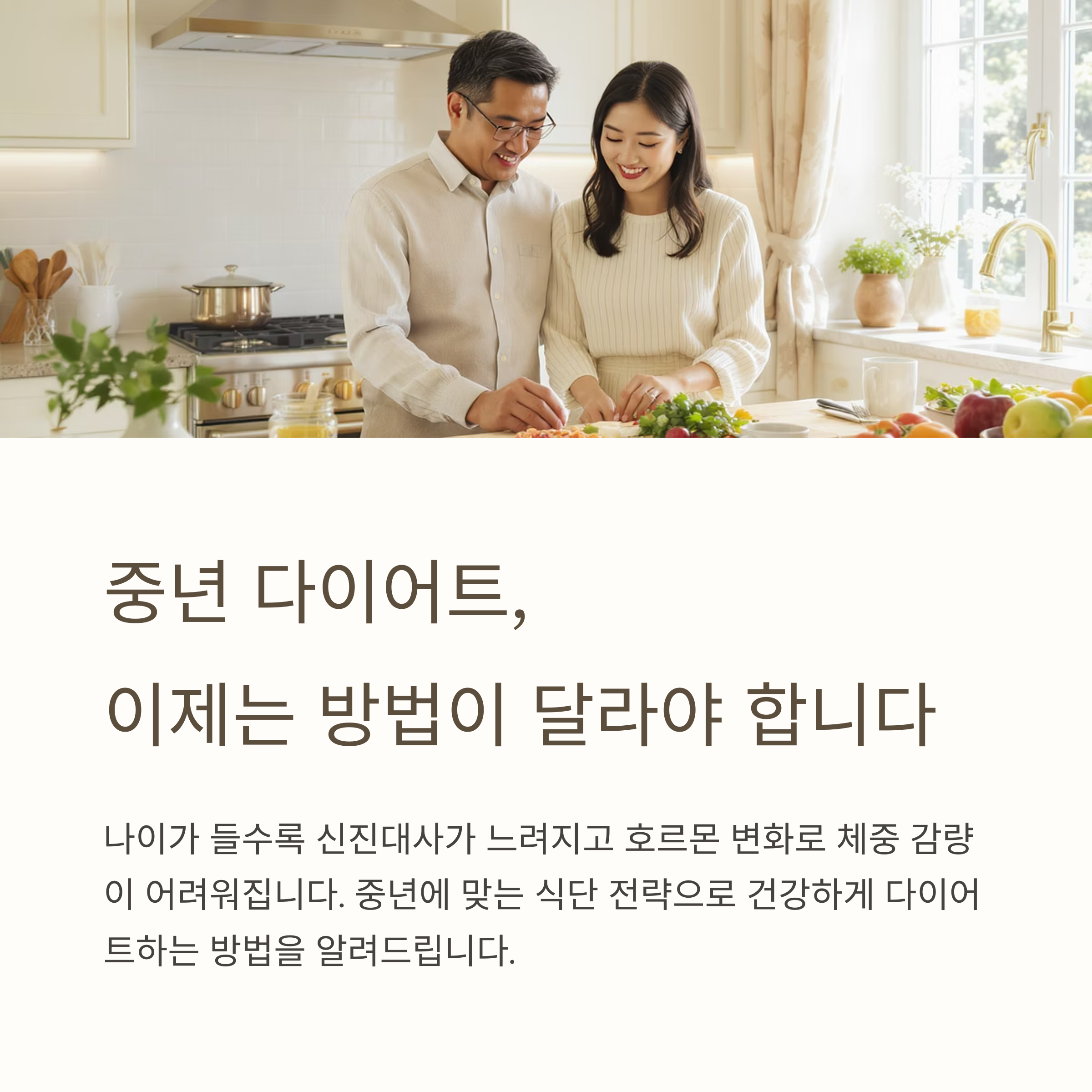 중년기에 들어서면 신진대사가 느려지고 호르몬 변화로 인해 체중 감량이 더욱 어려워집니다.