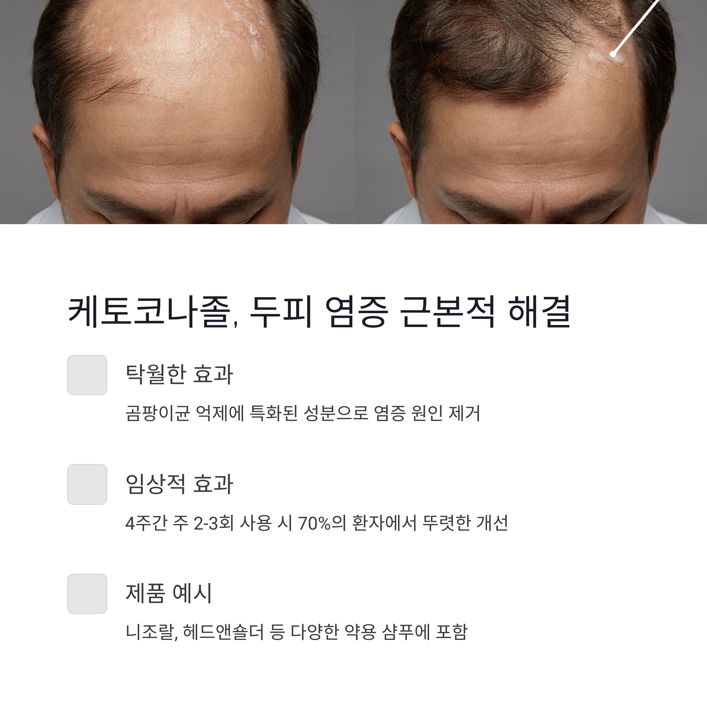 | 케토코나졸 | 항진균, 비듬 제거 | 지성 두피 |