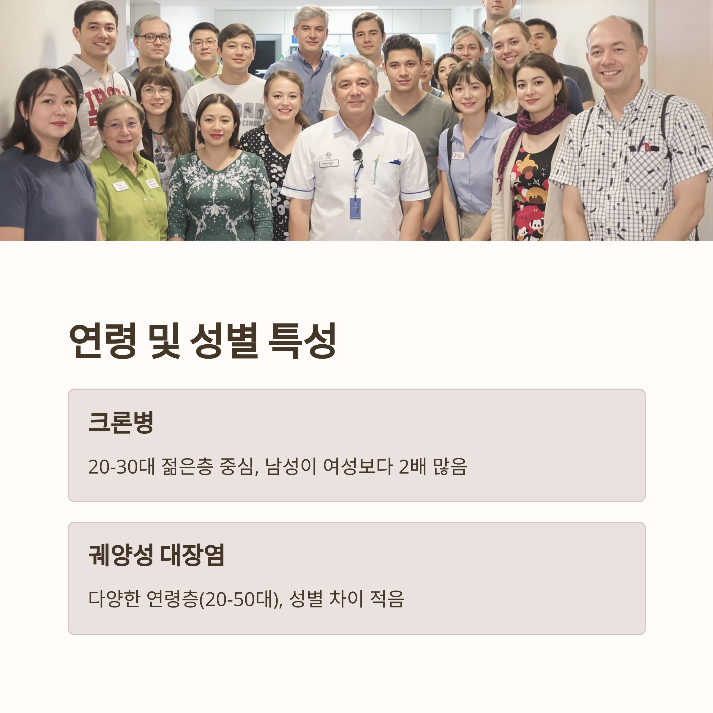 | 궤양성 대장염 | 전 연령층 | 20~30대가 전체의 약 30% |