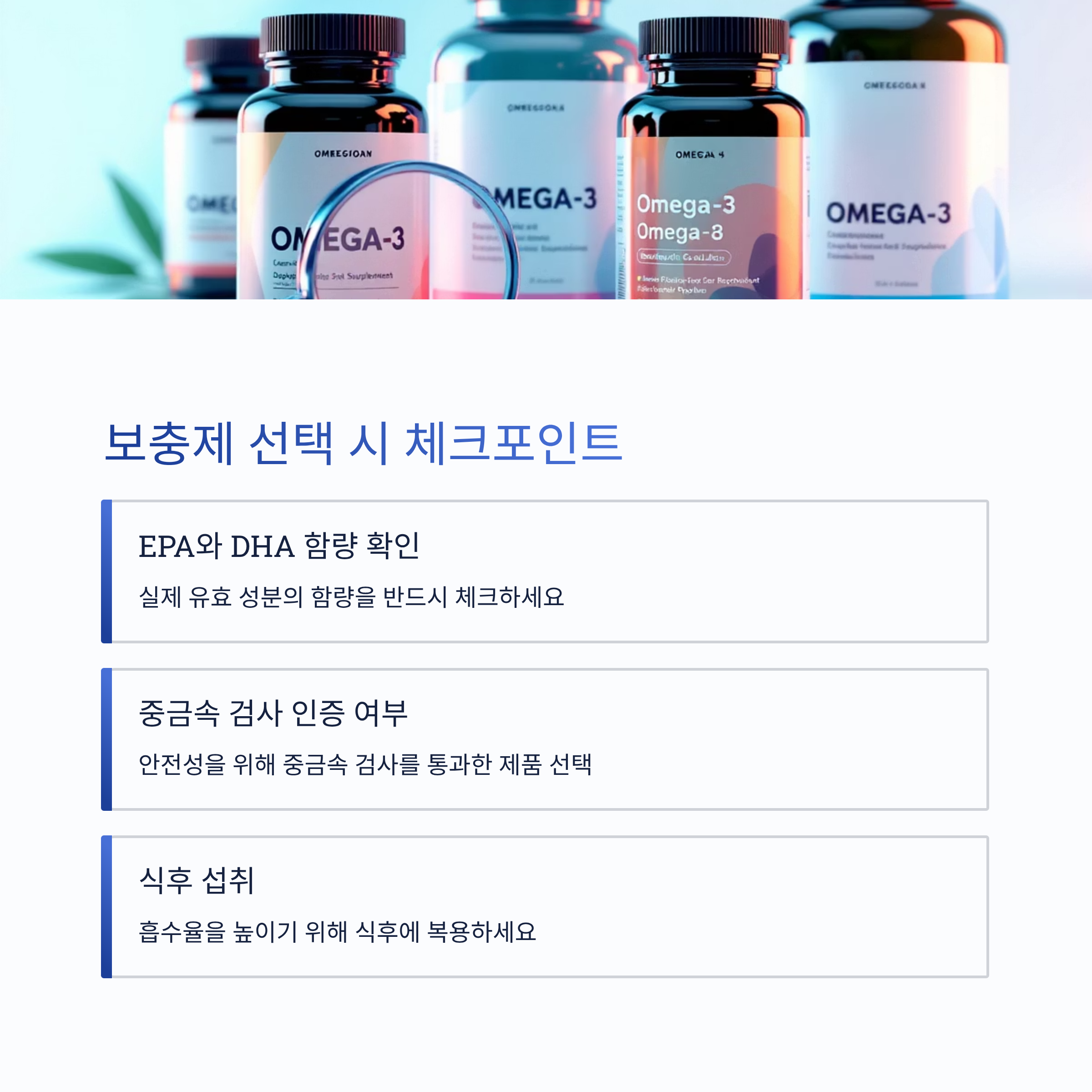 오메가3는 저녁 식사 후 섭취 시 혈중 농도 유지에 유리합니다.