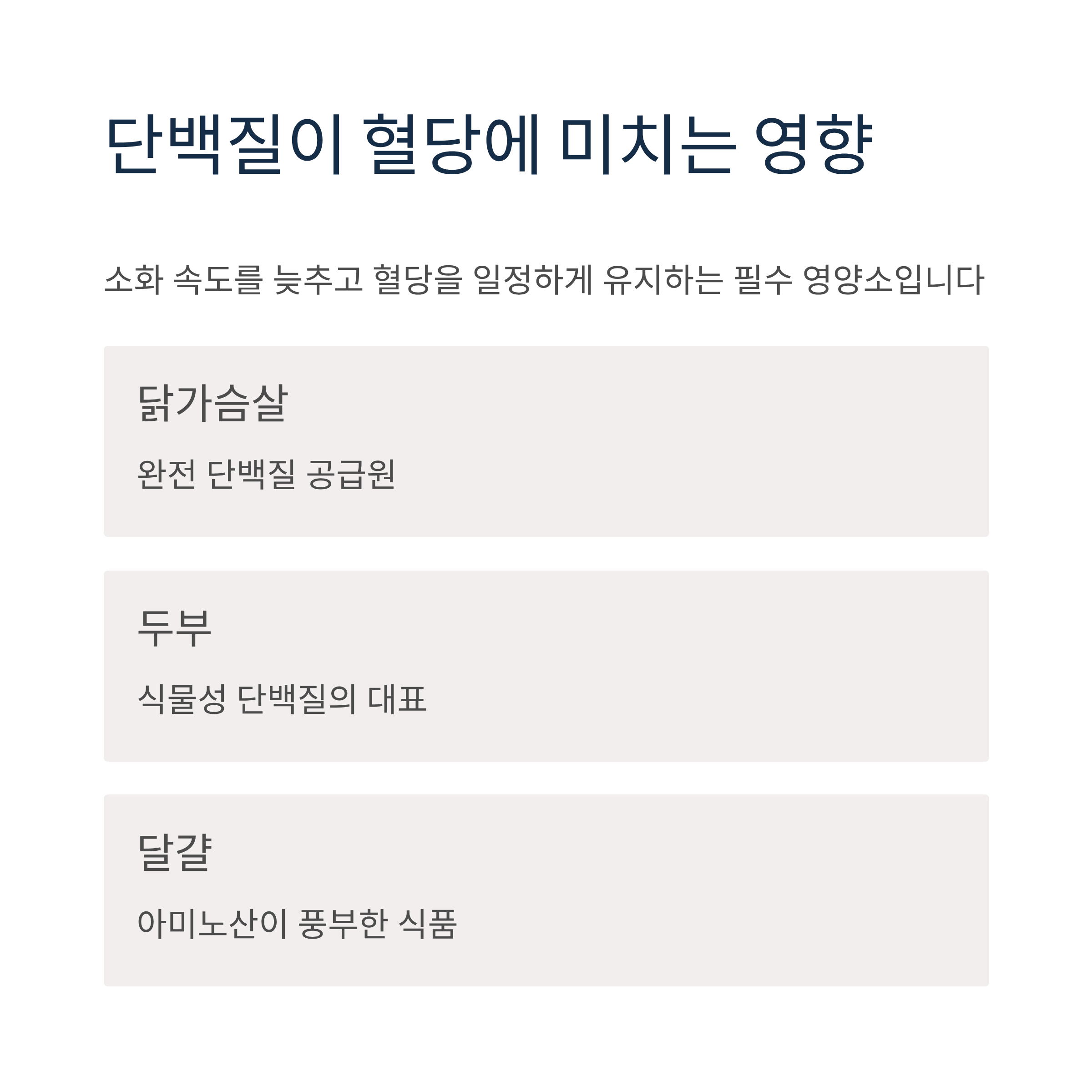 단백질은 소화 속도를 늦추고 혈당을 일정하게 유지하는 데 필수적입니다.
