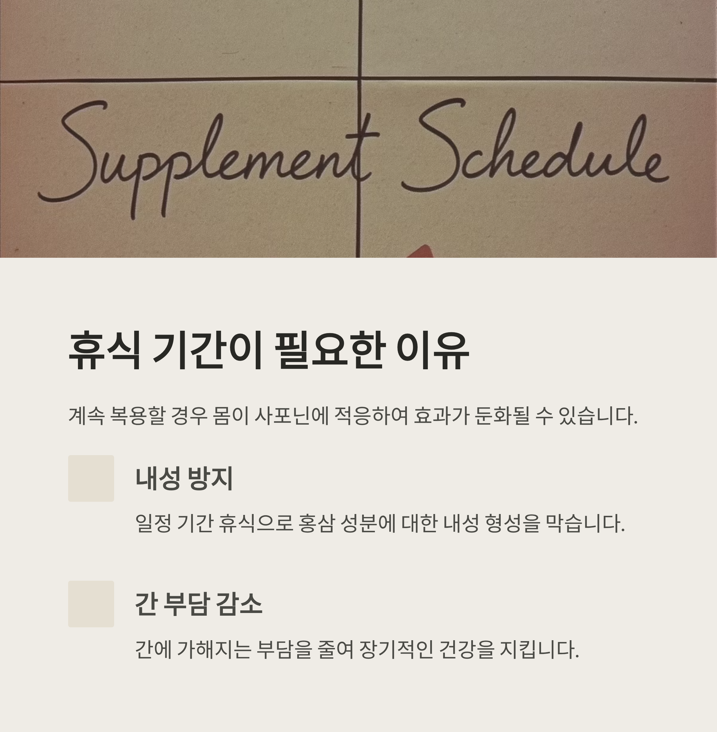 이번 글에서는 홍삼의 적절한 섭취 기간과 휴식이 필요한 이유,
